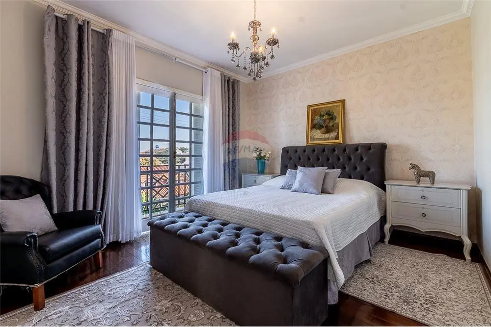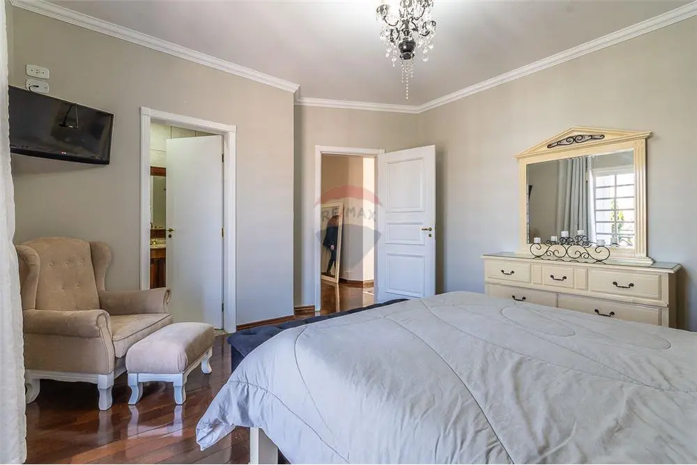 A casa é composta por uma cozinha com despensa, sala de TV, sala de estar com lareira, jardim de inverno e sala de jantar. Possuí uma edícula com 4 cômodos.