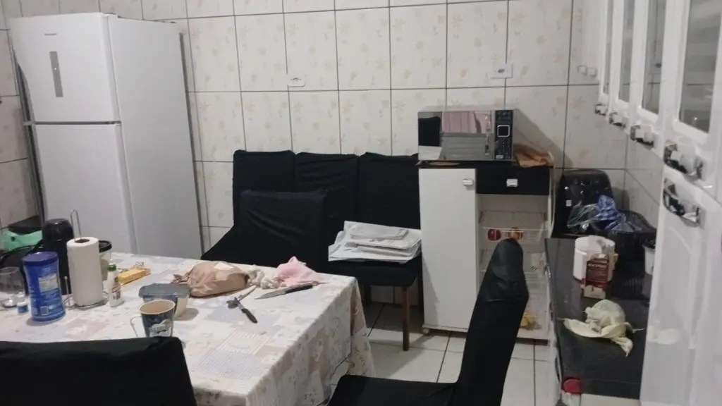 Excelente sobrado COM SACADA E SUÍTE E CHURRASQUEIRA, 2 dormitórios sendo 1 suíte, sala, 2 banheiros, cozinha, dispensa, área de serviço.