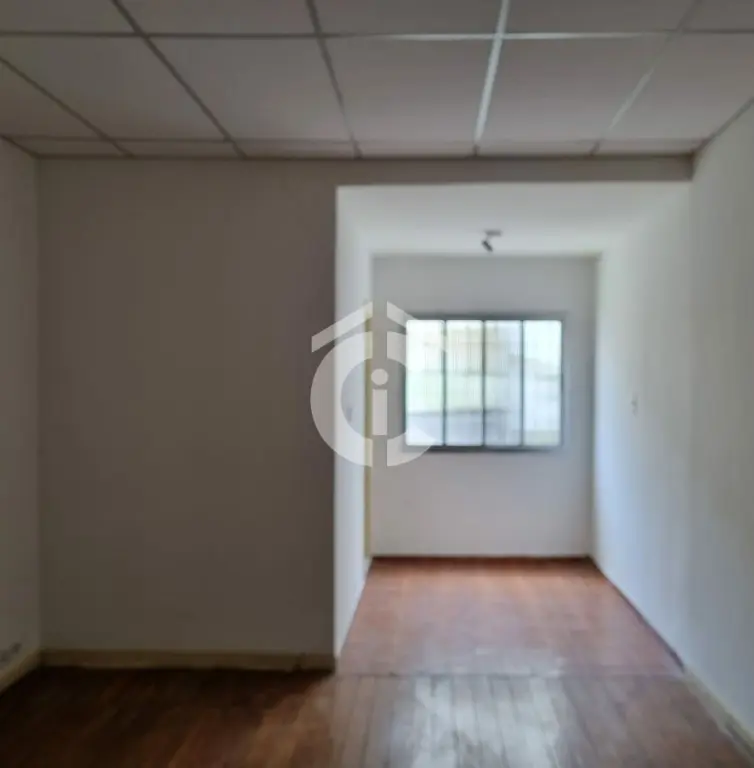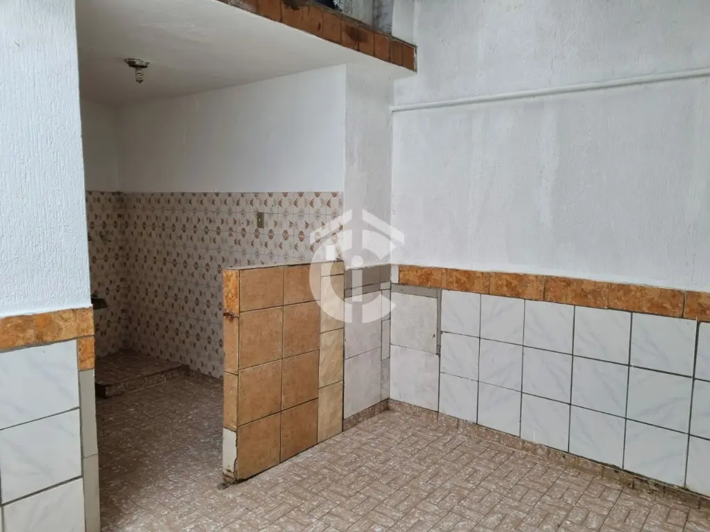 Sobrado com 2 quartos com piso de madeira, sala com piso frio, cozinha com piso frio, 2 banheiros e lavanderia com piso frio.