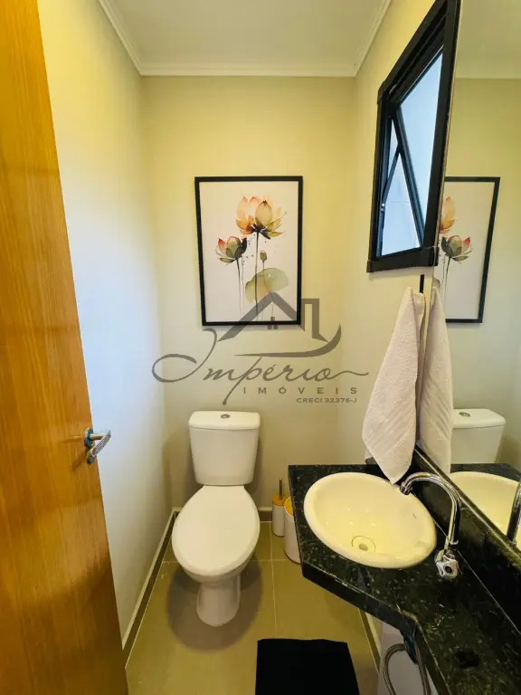 Comodidade: Lavabo espaçoso com ventilação natural (janela) e área de serviço separada.