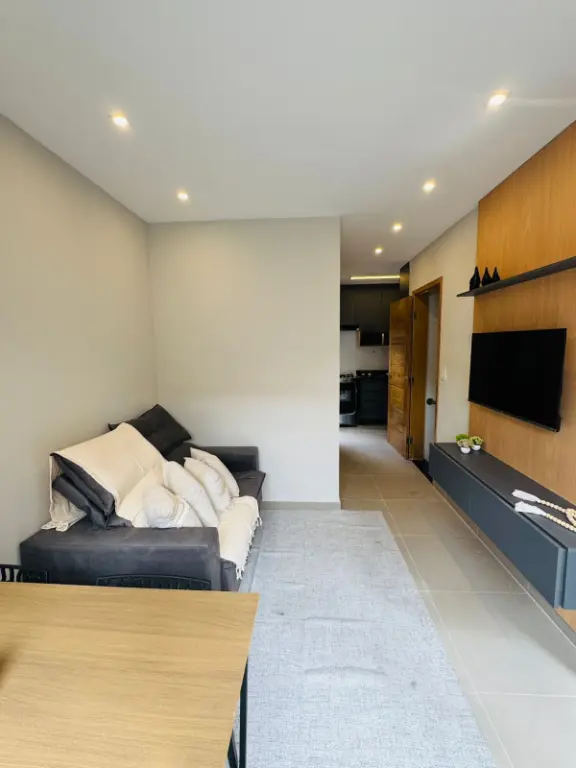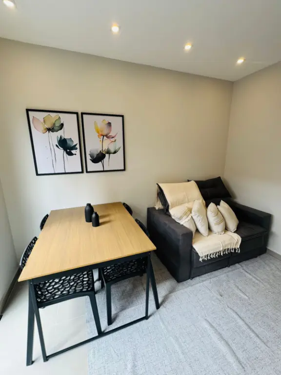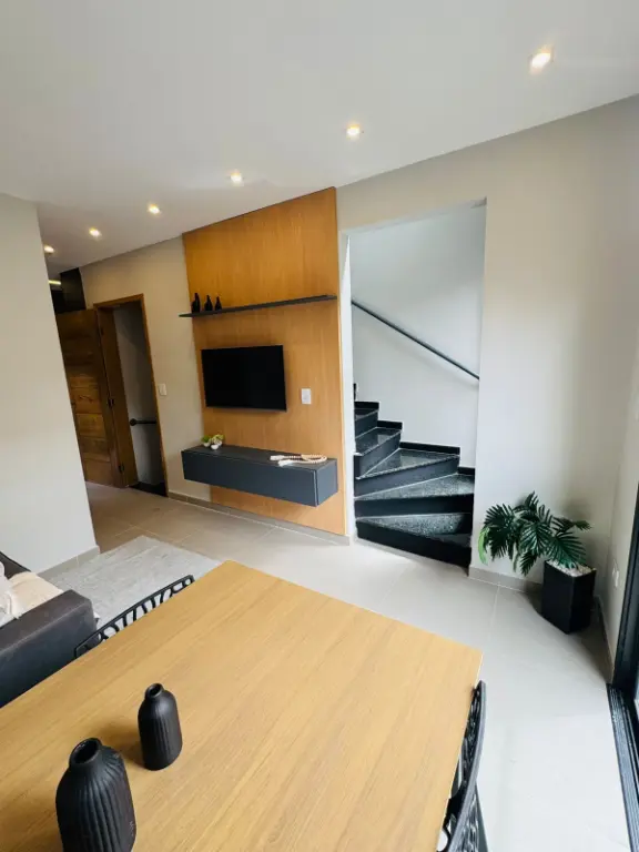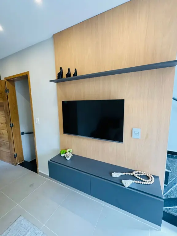 Sobrado com dois dormitórios, dois banheiros, sala, cozinha, área de serviço, uma vaga