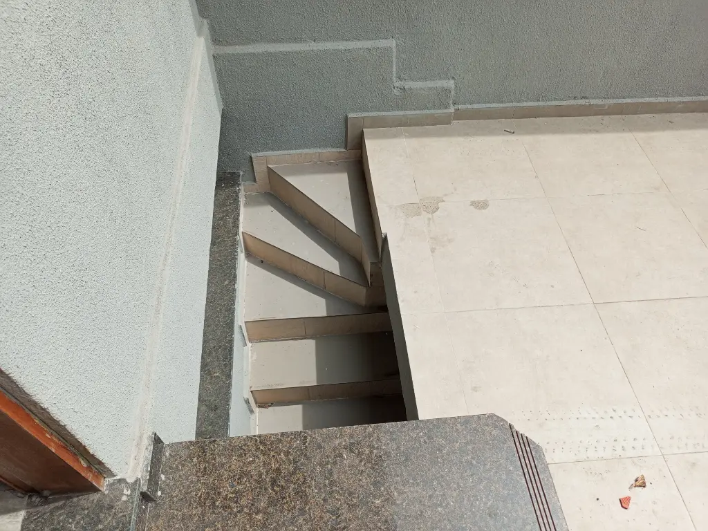 Na parte de baixo da garagem tem um São enorme com banheiro.