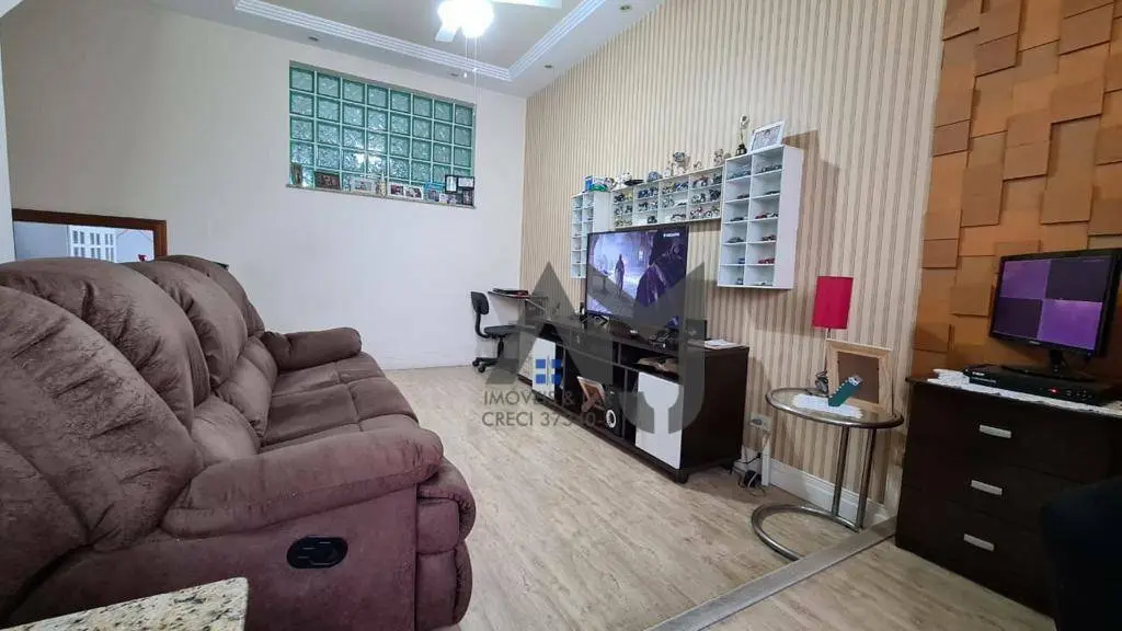 sobrado composto por 2 suítes, sala, cozinha, 3 banheiros, terraço, área de serviço e 1 vaga coberta.