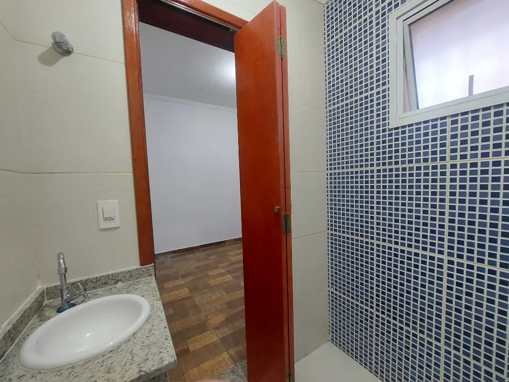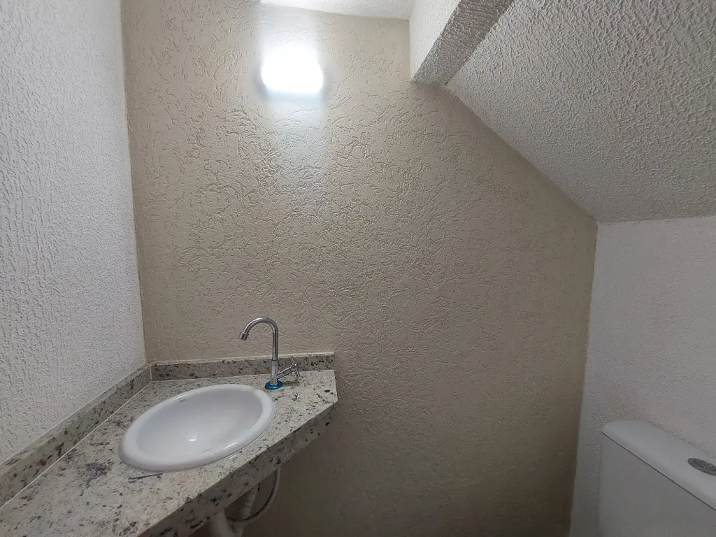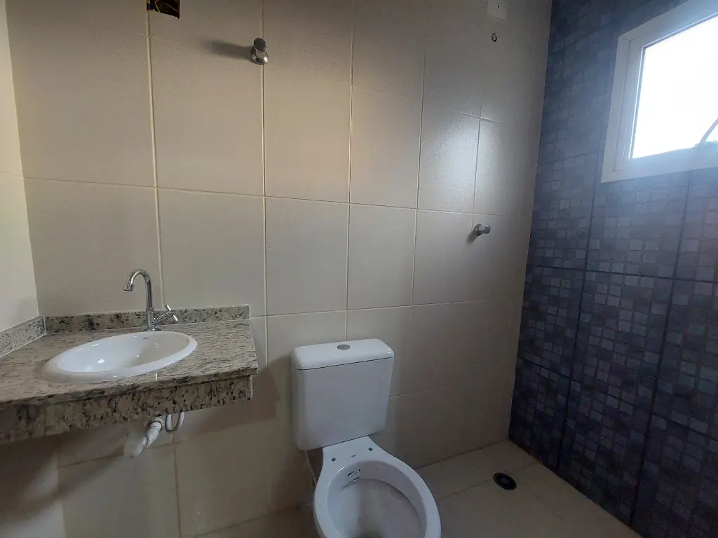 No pavimento térreo, o imóvel oferece sala ampla e bem iluminada, cozinha funcional, lavabo, área de serviço com porta de vidro, acabamento em porcelanato e granitos nas escadas, que valorizam o design contemporâneo.