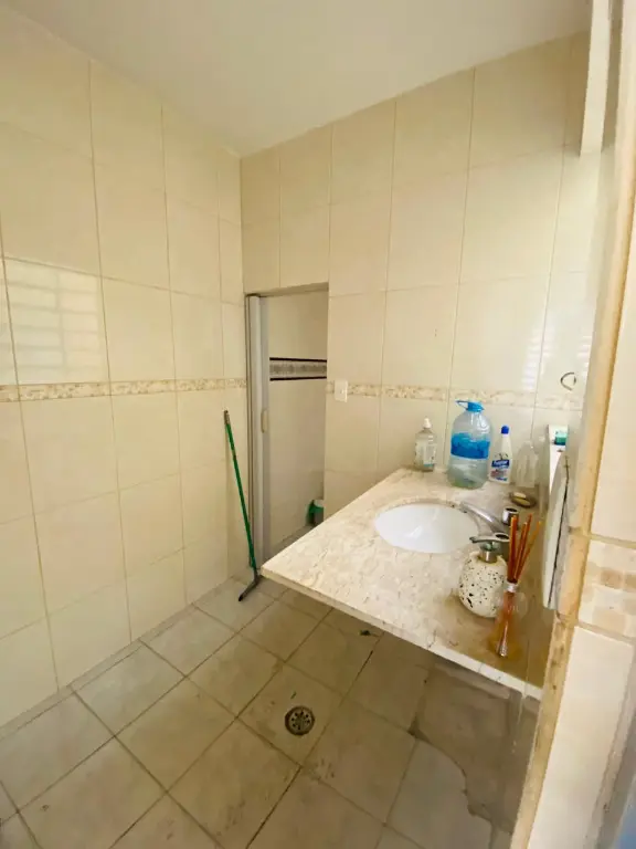 Dois dormitórios com varanda, lavanderia, dois banheiros, cozinha, uma vaga de garagem, todos os cômodos grandes.