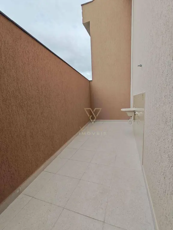 Sobrado de esquina com 71m² distribuído em sala ampla para dois ambientes, cozinha espaçosa, área de serviço separada, 1 lavado, 2 dormitórios, 1 banheiro e 2 vagas de garagem descoberta.
