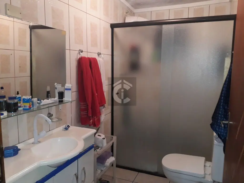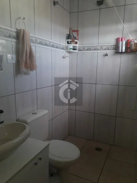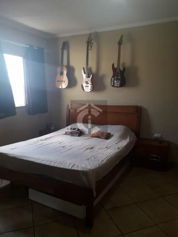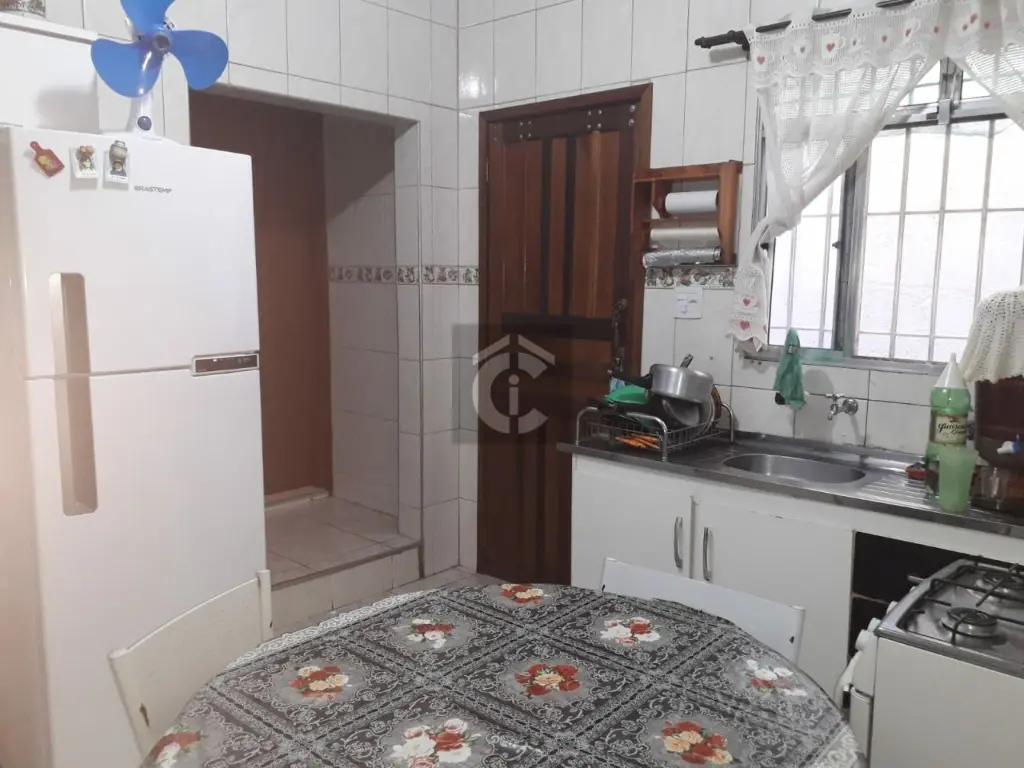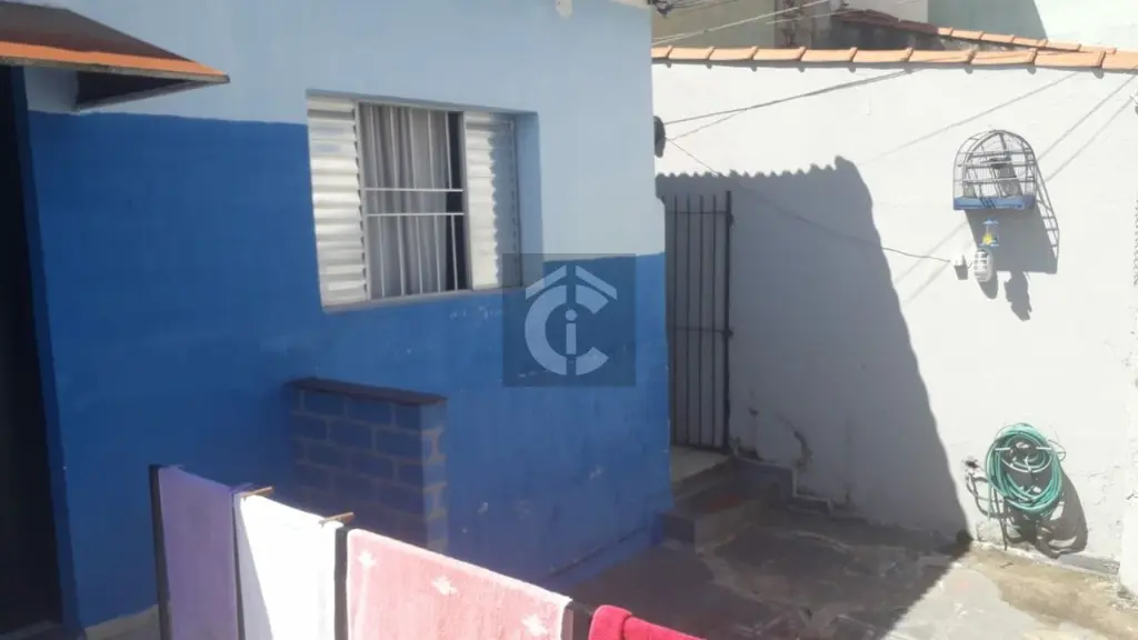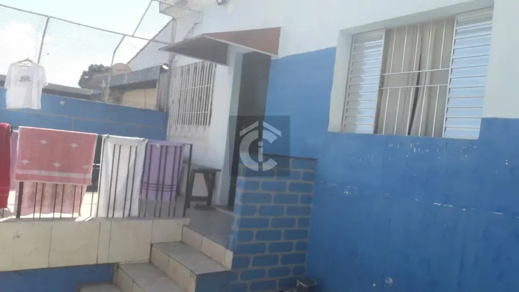 imóvel possui uma casa térrea com 3 quartos, sala de estar e jantar em 2 ambientes e uma área de serviço. Além disso, há também um sobrado com 2 quartos, sendo 1 suíte, cozinha e 2 banheiros.