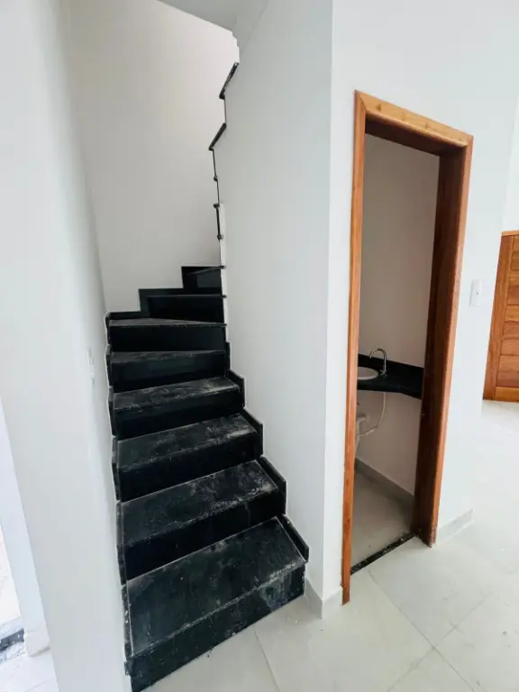 Sobrado de três dormitórios, com uma suite, duas vagas e terraço com churrasqueira