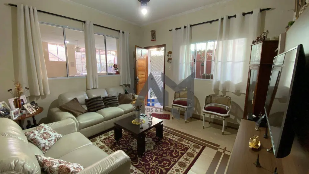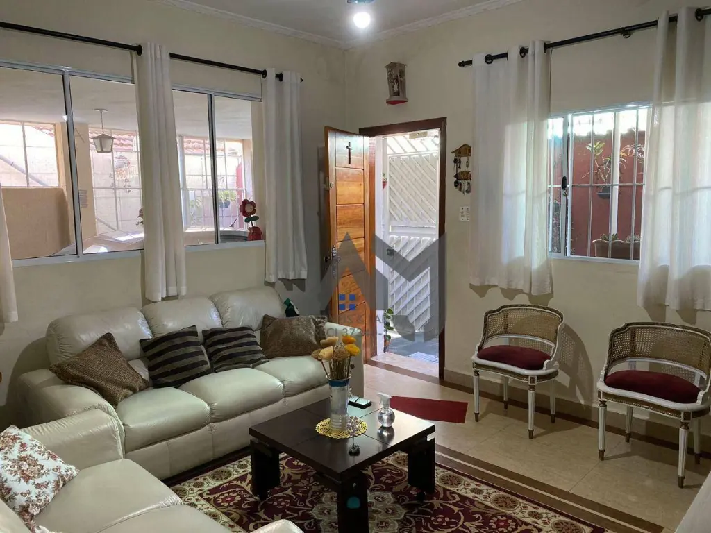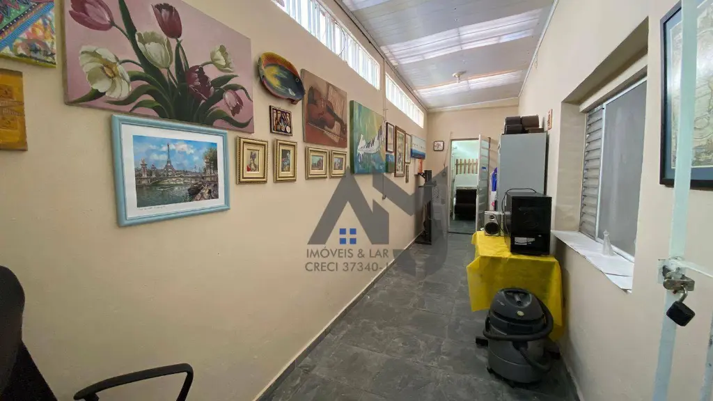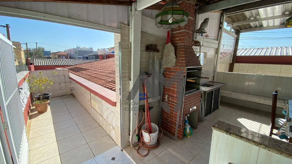 2 Dormitorios sendo 1 suíte, sala, cozinha 3 banheiros, área gourmet com churrasqueira na parte de cima do imovel, 2 garagens com 1 vaga cada e com portão automático (podendo utilizar uma delas como escritório ou sala comercial.)