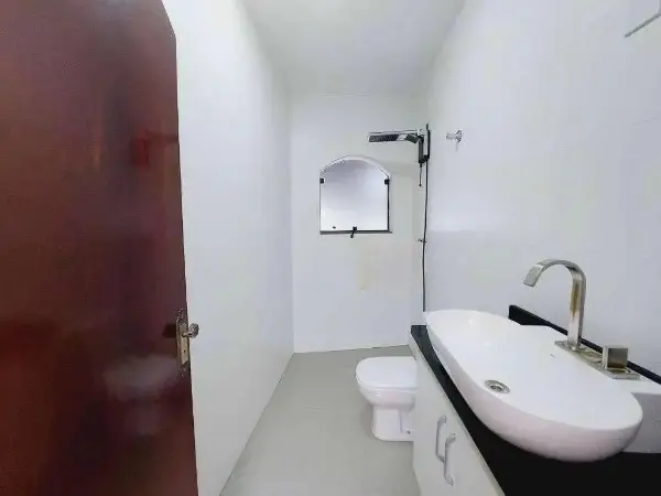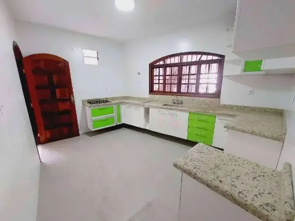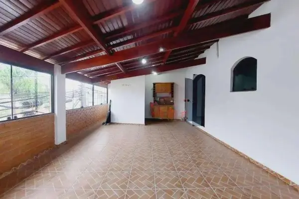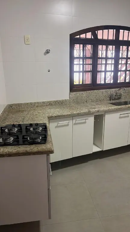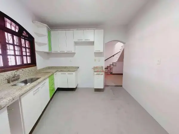 2 dormitórios, sala, lavabo, cozinha, área de serviço, terraço com churrasqueira e garagem para 3 carros.