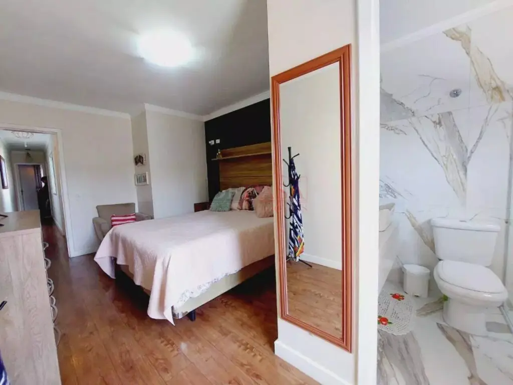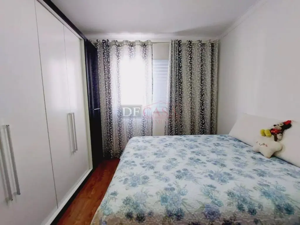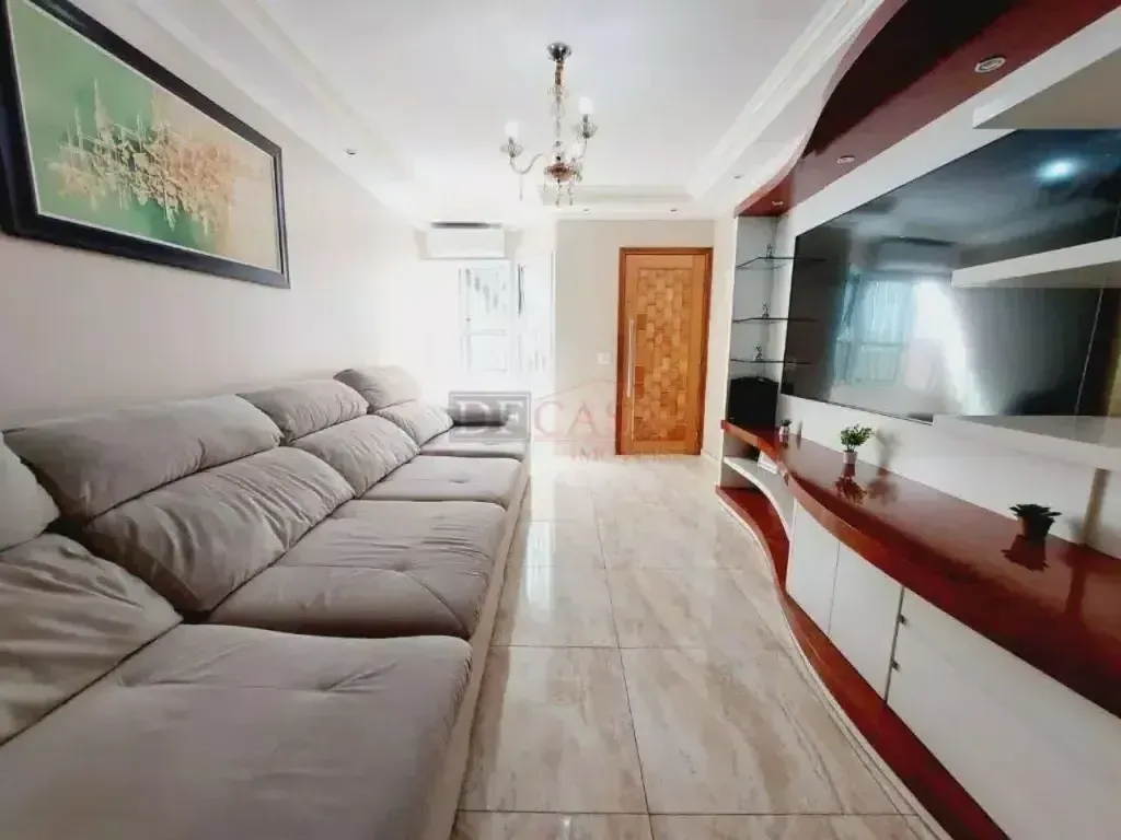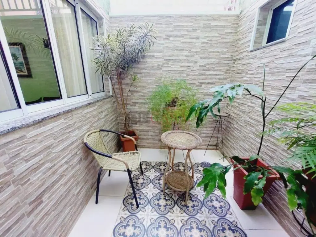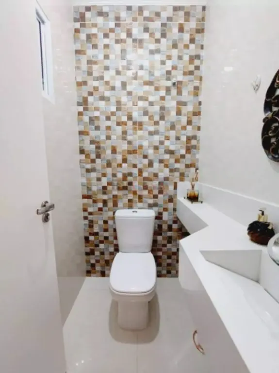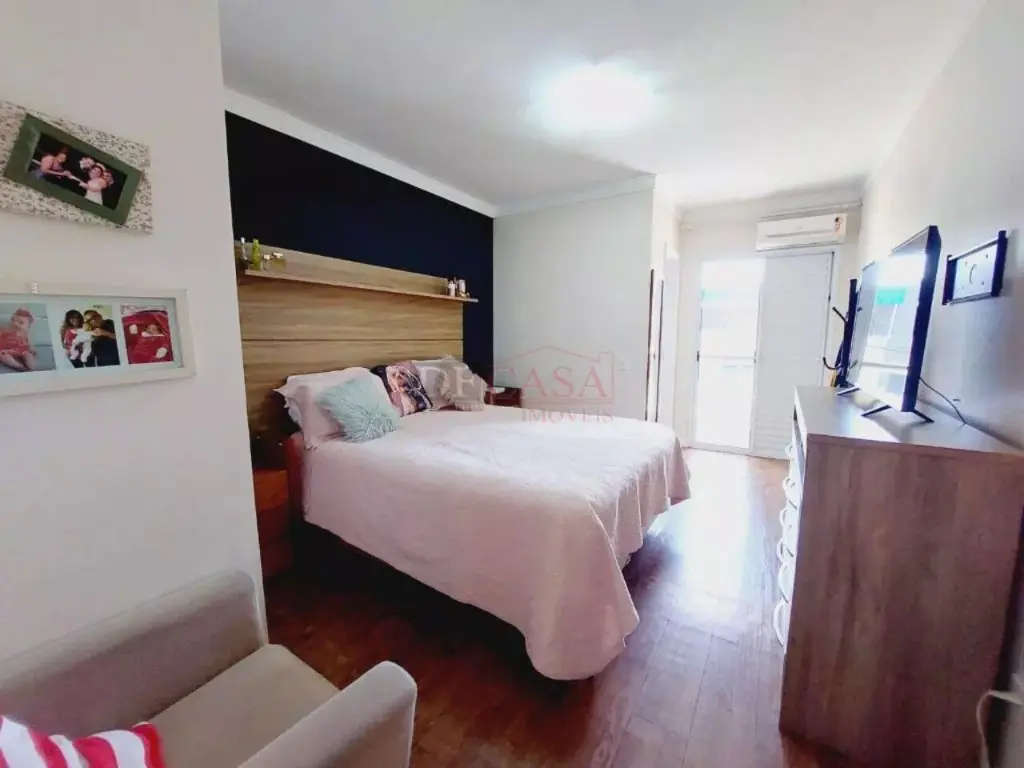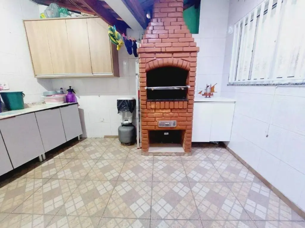 Sobrado com sala de estar com sanca de gesso e luminárias, sala de jantar, lavabo, cozinha com planejados, área de serviço coberta, quintal e churrasqueiro, 2 banheiros (1 lavabo), 3 dormitórios (1 suíte e sacada).