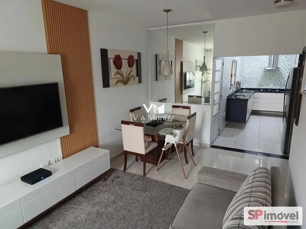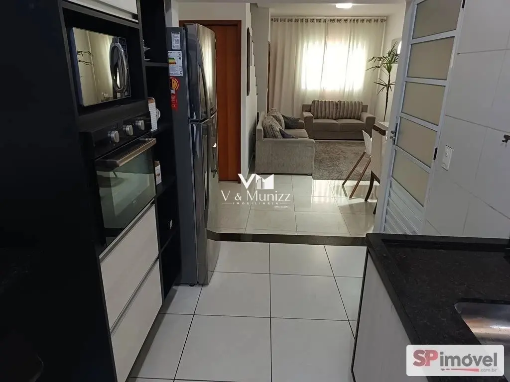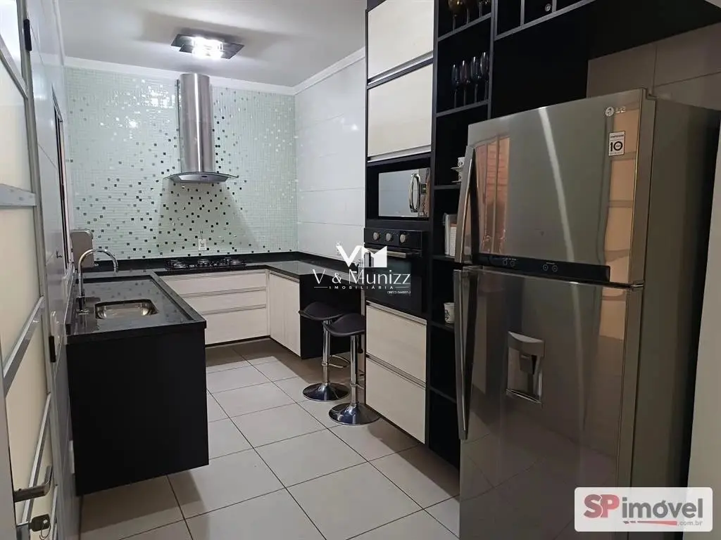 Sobrado com 3 dormitórios com piso vinilico, sendo 01 suíte, ar condicionado novo quente/frio na suíte, cozinha decorada com móveis planejados, cooktop, coifa e forno elétrico, sala de estar e jantar decorada, 3 banheiros, 3 vagas de garagem, lavanderia com cobertura retrátil, churrasqueira tijolinho palha.