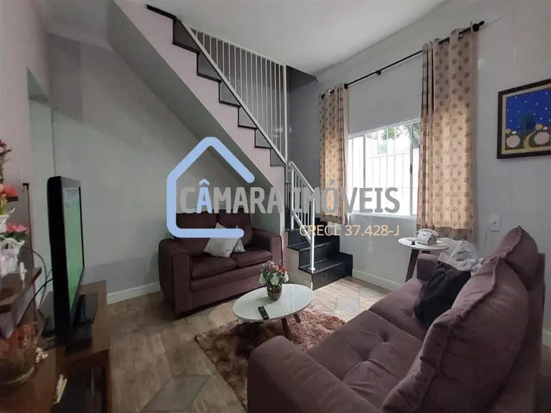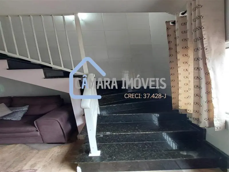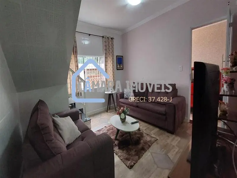 O sobrado conta com uma sala de estar espaçosa, revestida com piso de madeira. Esse ambiente é ideal para receber visitas, relaxar e desfrutar de momentos de convivência.