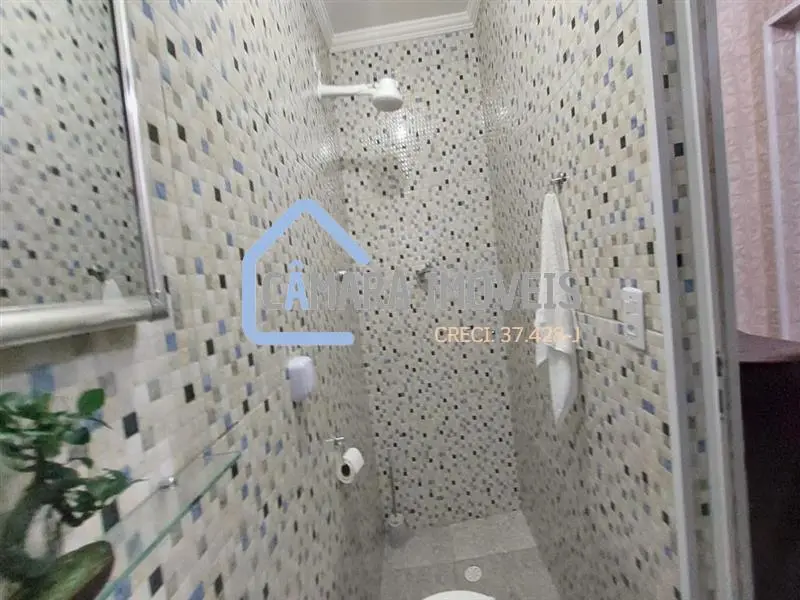 O imóvel possui 2 banheiros revestidos com piso frio e azulejos que cobrem toda a extensão das paredes. Um dos banheiros dispõe de um box em vidro, proporcionando um espaço separado para o banho.