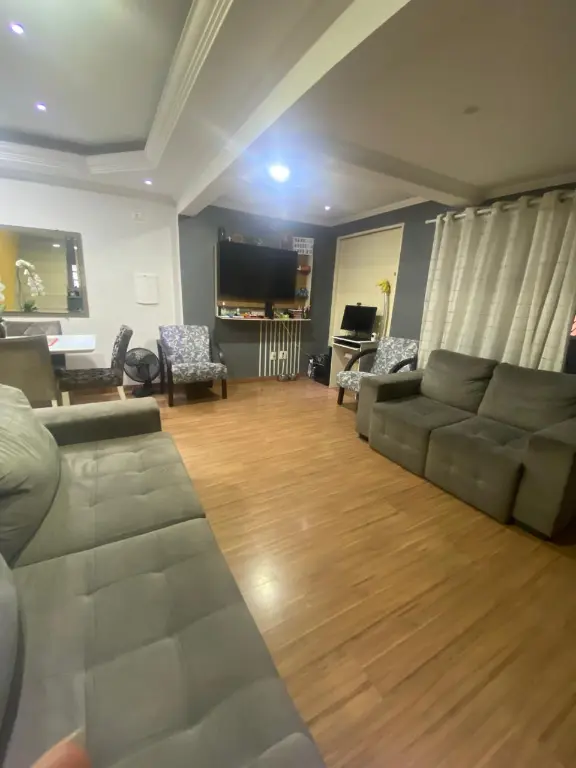 - 2 Casa, na parte de cima, com 2 dormitórios, Sala, cozinha, banheiro, quintal junto com área de serviço e uma vaga de garagem coberta e fechada.