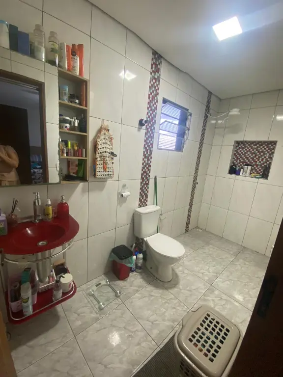 - Casa Principal, Com 04 dormitórios piso Laminados, sendo uma Suíte, Sala espaçosa, com Sanca de gesso, Cozinha com armário embutido e fogão Cooktop, banheiros com box, quintal nos fundos com área de serviço e Vaga de Garagem na frente do imóvel coberta e fechada.