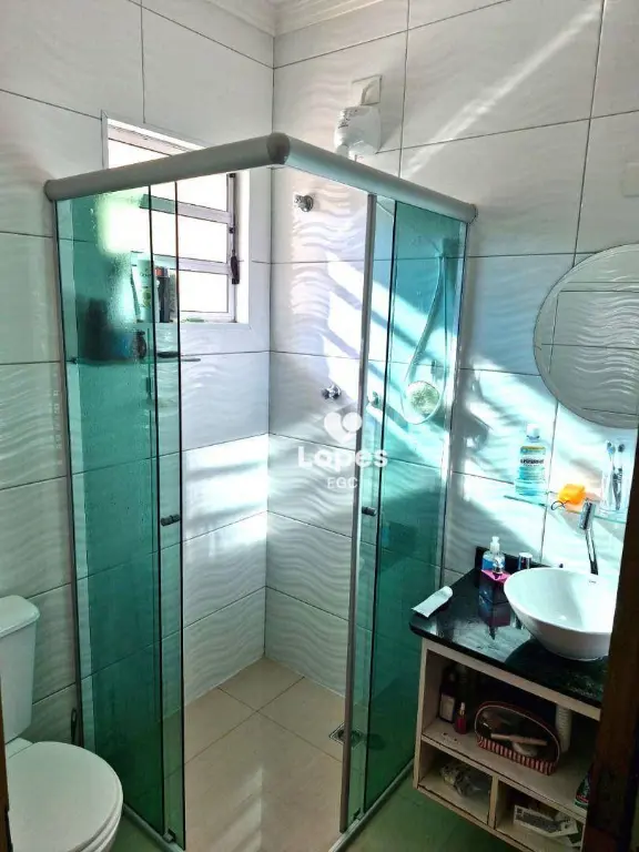 A cozinha é funcional e bem equipada, com armários planejados que otimizam o espaço e facilitam o dia a dia. Além disso, o sobrado possui um lavabo, ideal para visitas, área de serviço independente e duas vagas de garagem, garantindo praticidade e comodidade.