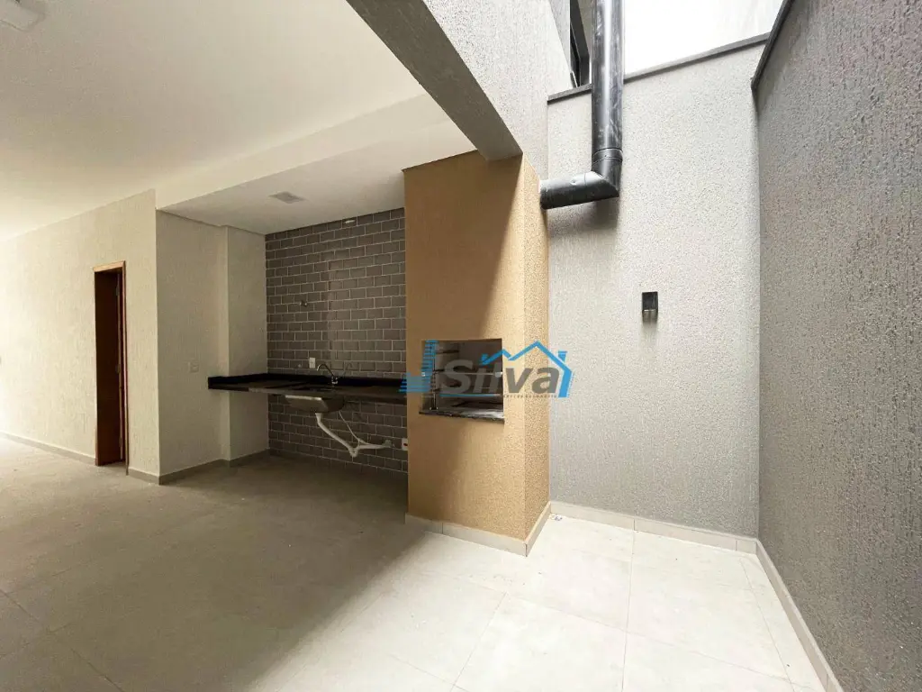 Aproximadamente 126m² de área construída, estrutura moderna e diferenciada, acabamentos e revestimentos de primeira todo no porcelanatos e granito, teto rebaixado em forro drywall, quintal com área gourmet com churrasqueira e pia, esquadrias pretas, portão automatico.