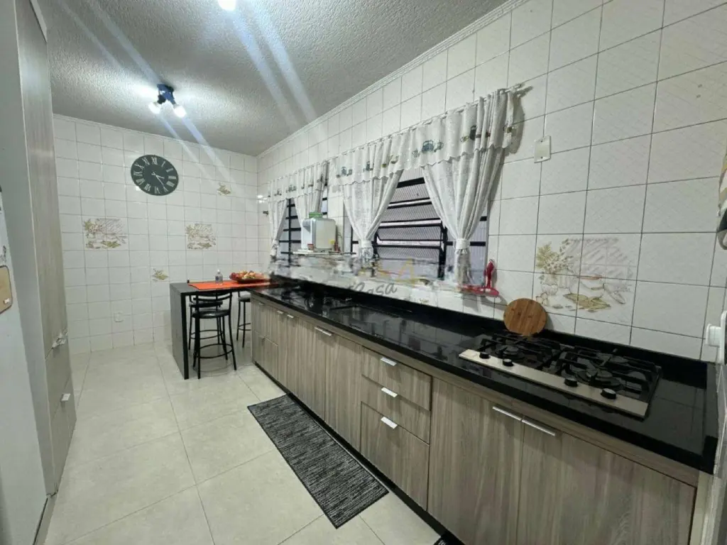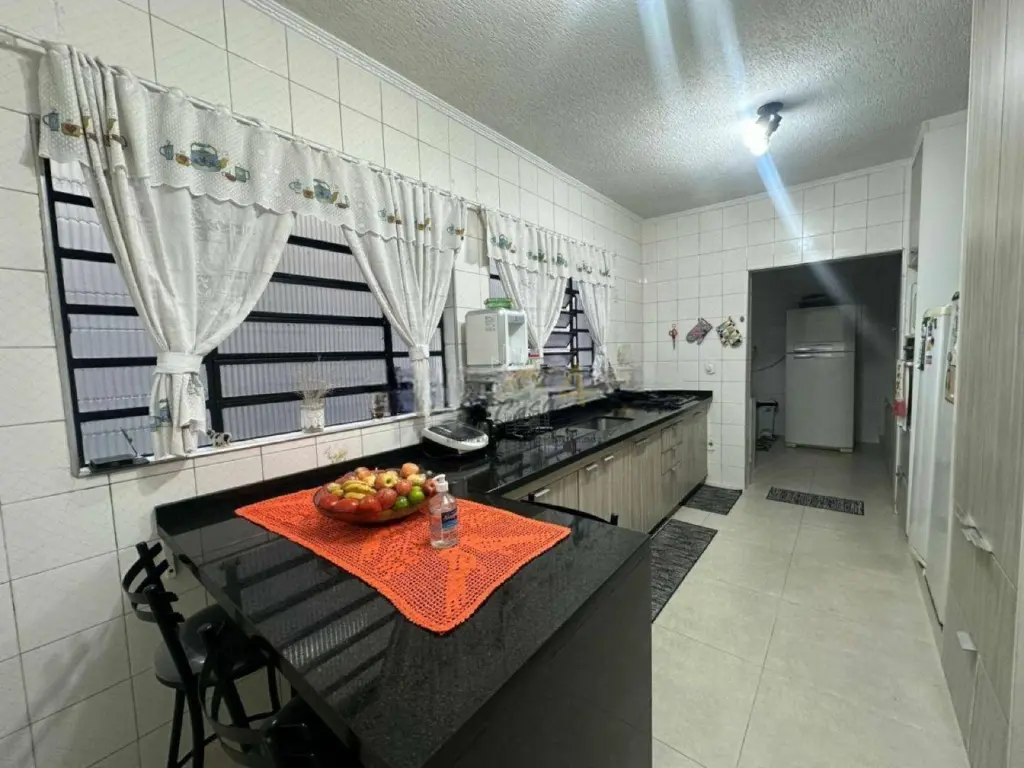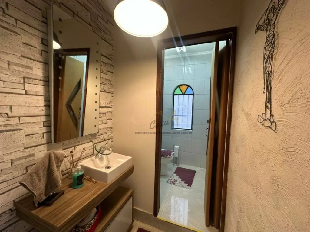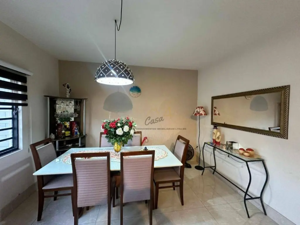 Nos fundos, há uma área de serviço coberta e quintal, ideal para quem deseja espaço extra para lazer ou armazenamento. A garagem comporta até dois veículos, com portão automático.