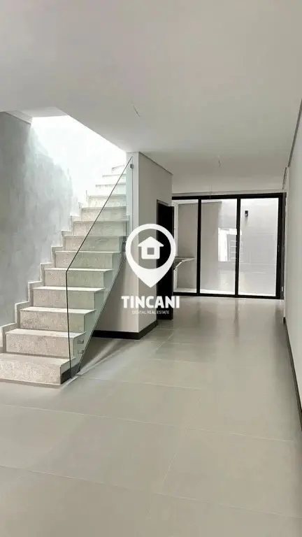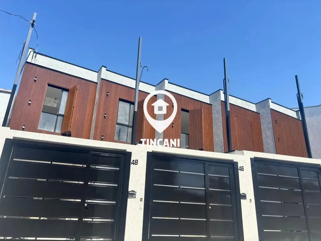 Sobrado com 3 dormitórios, todos com suíte, sala, cozinha, lavabo, área de serviço, quintal com churrasqueira e 2 vagas de garagem (1 coberta).