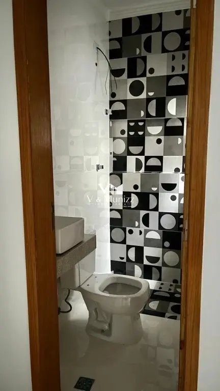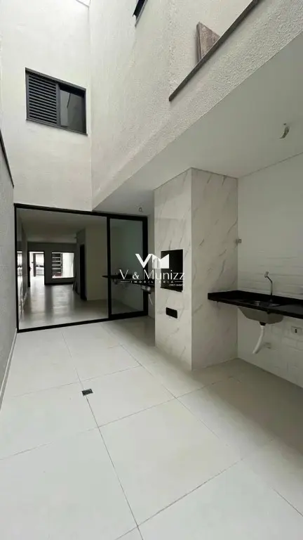 área útil 100 m². Sobrado em estilo moderno com cozinha integrada com sala, piso em porcelanato polido