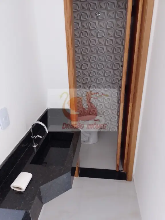 SOBRADO NOVO com acabamento de ALTO PADRA~O com 3 dormito´rios sendo 1 sui´te e sacada, sala de estar e sala de jantar, cozinha, banheiro, lavabo, lavanderia com quintal nos fundos, 2 vagas de garagem e porta~o automa´tico.