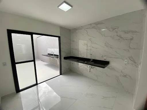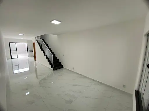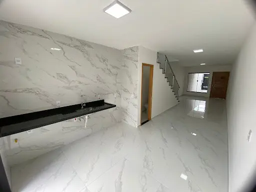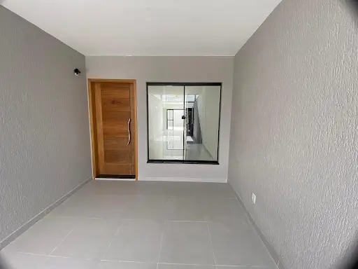Casa diferenciada com pé direito na sala, cozinha e cômodos mais altos, trazendo ótima iluminação natural e arejada