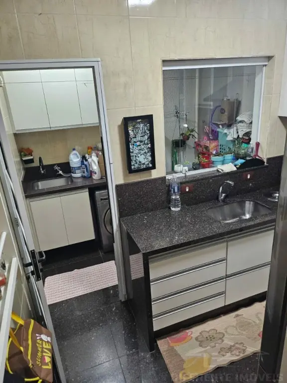 Cozinha e área de serviço coberta, ambas em granito