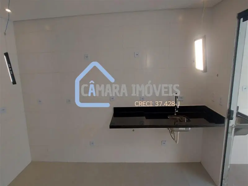 - 01 Cozinha integrada com a sala, pia em granito preto, ventilada e iluminada;