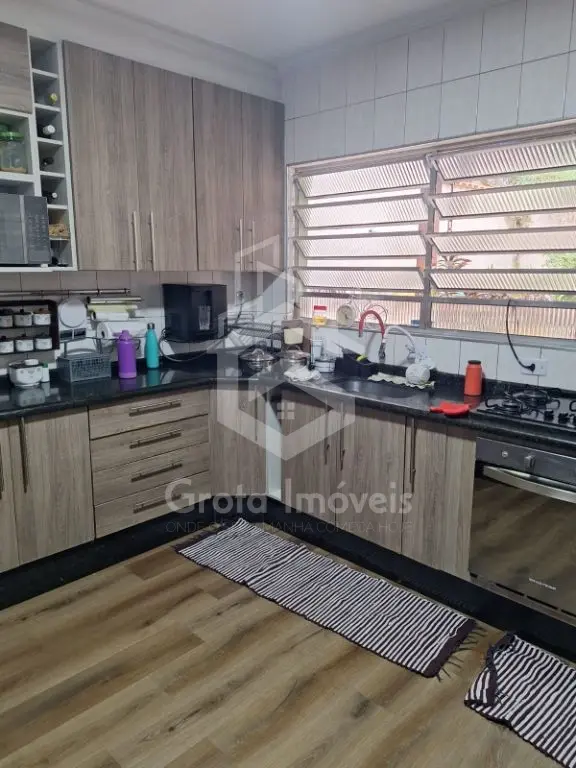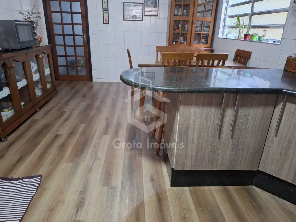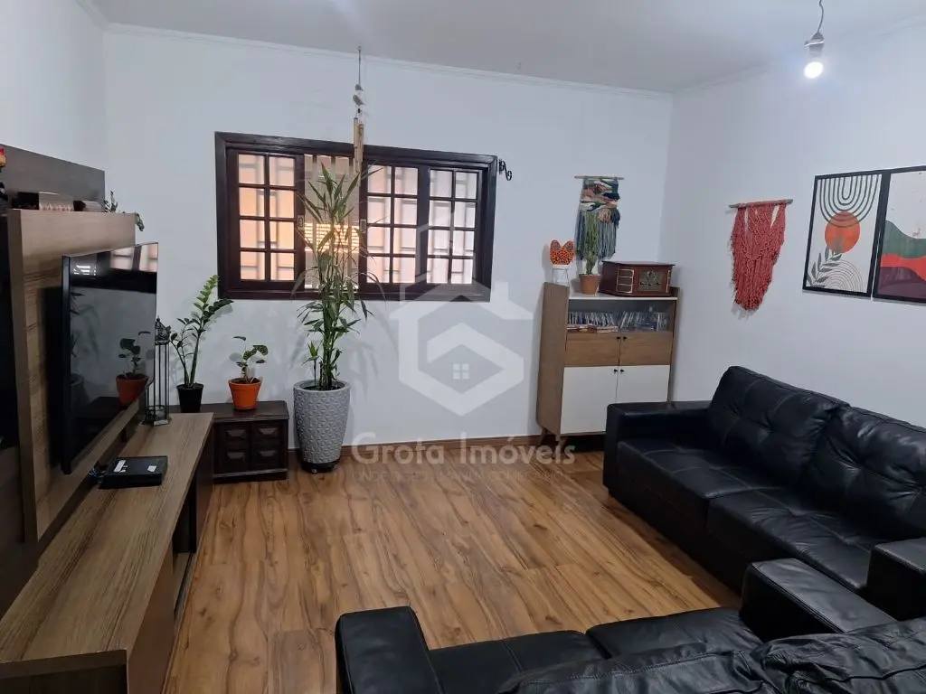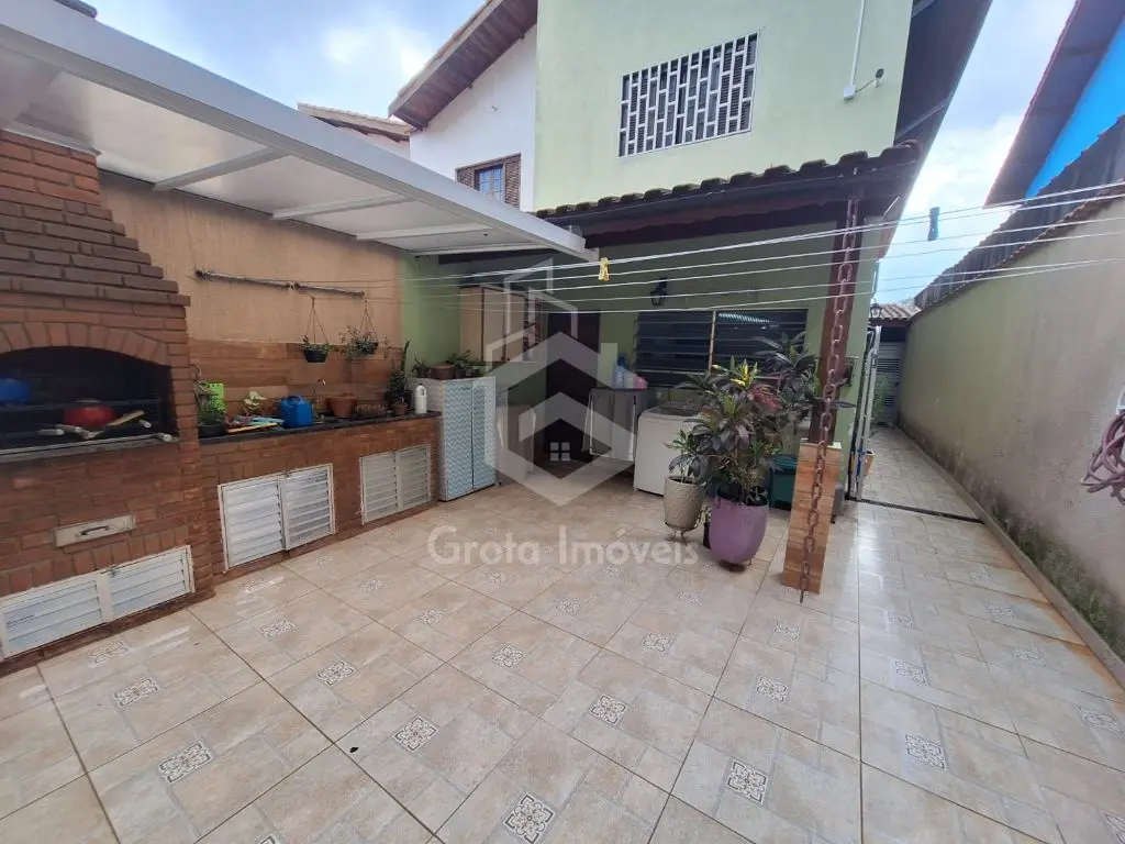 Garagem coberta para dois carros, corredor lateral e um agradável quintal nos fundos com churrasqueira.