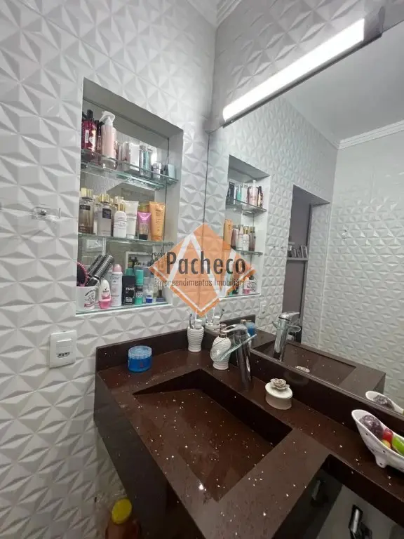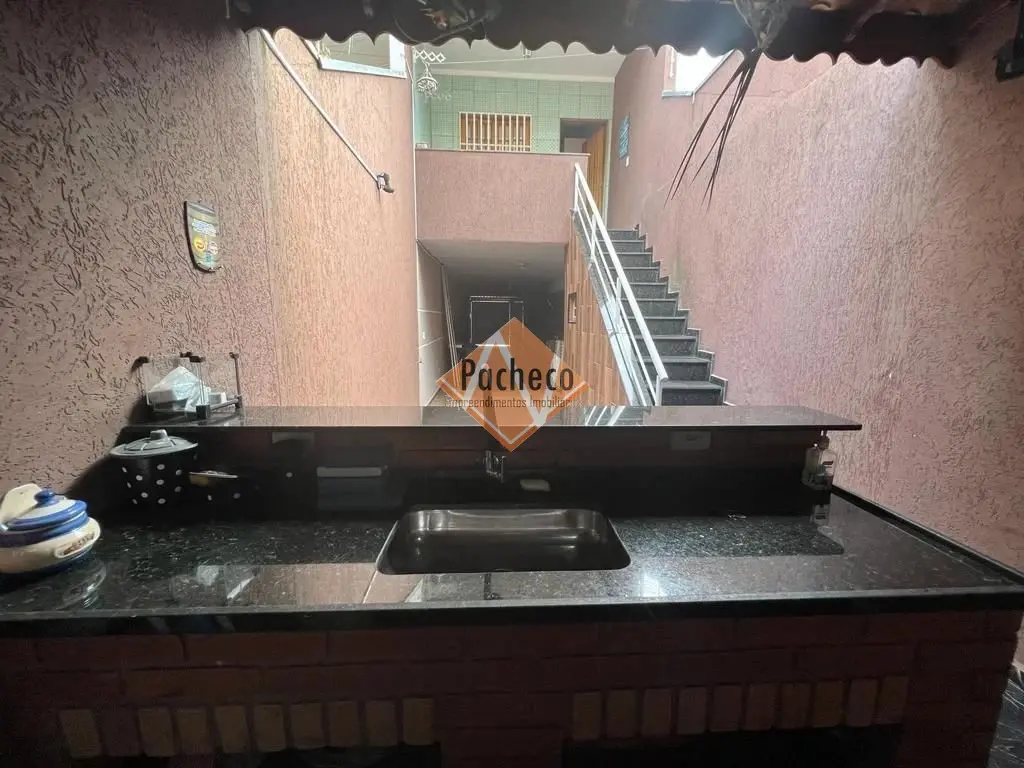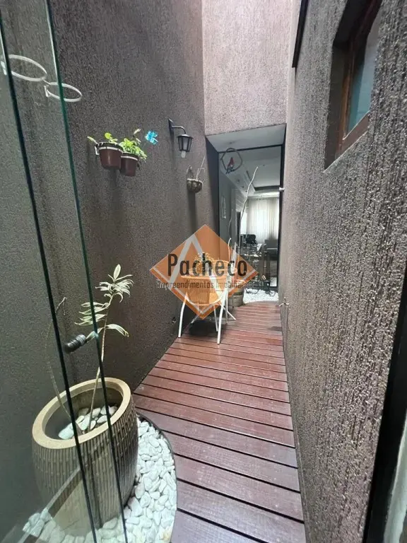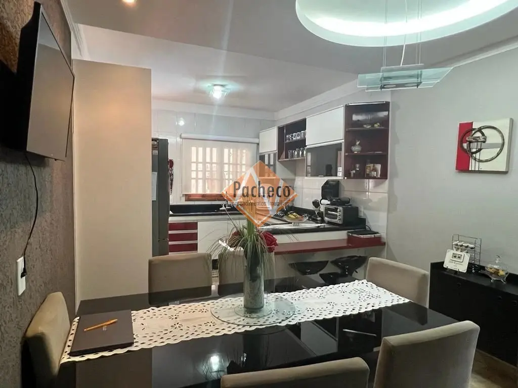 Sobrado com 3 dormitórios sendo 1 suíte com sacada, cozinha com sala de jantar, sala de estar, jardim de inverno, sótão, 2 banheiros, 1 lavabo, área de serviço, área de churrasqueira separada com total liberdade pra evento em acabamento de porcelanato e 4 vagas de garagem.