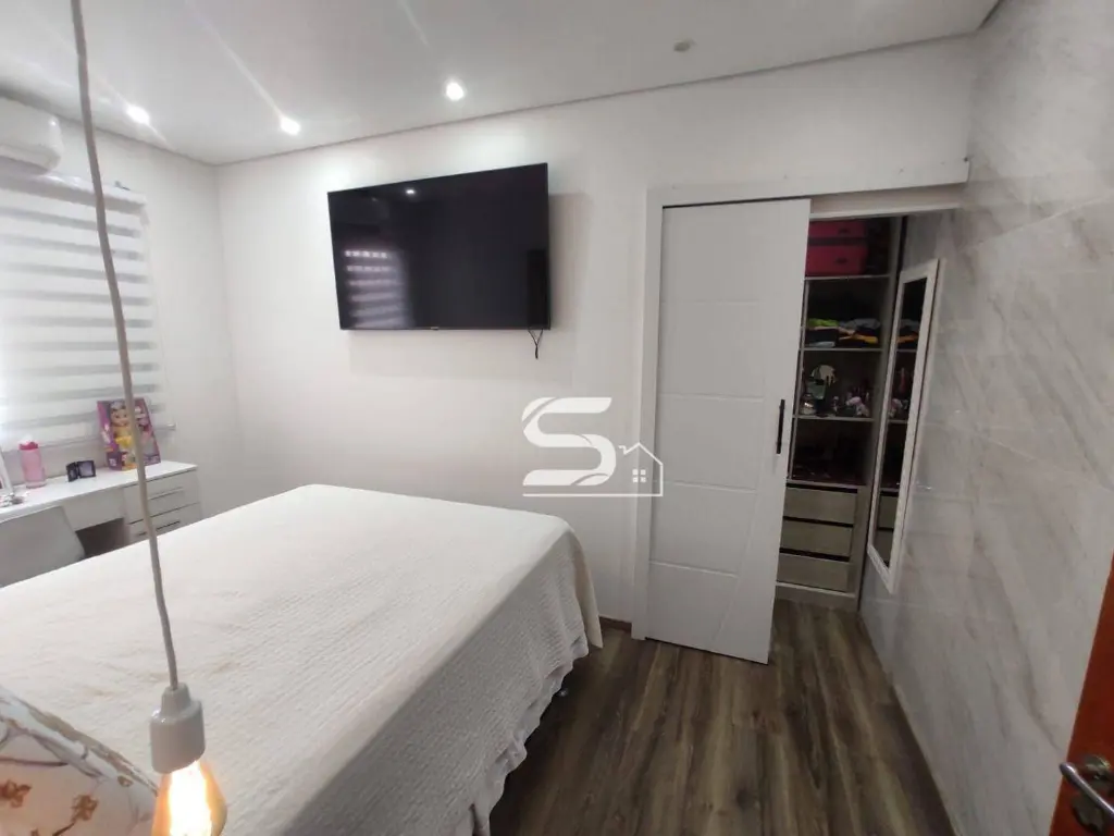 Com 3 dormitórios, sendo 1 com closet, 2 banheiros, sala, cozinha planejada, lavanderia, linda área de churrasqueira toda coberta e 6 vagas de garagem coberta.