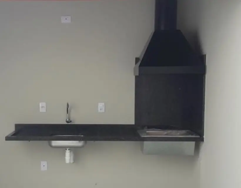 - Cozinha com porta balcão em vidro com acesso ao quintal e churrasqueira;