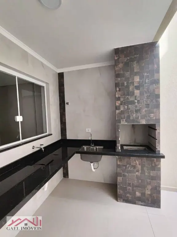 Área de lazer com churrasqueira e pia em granito