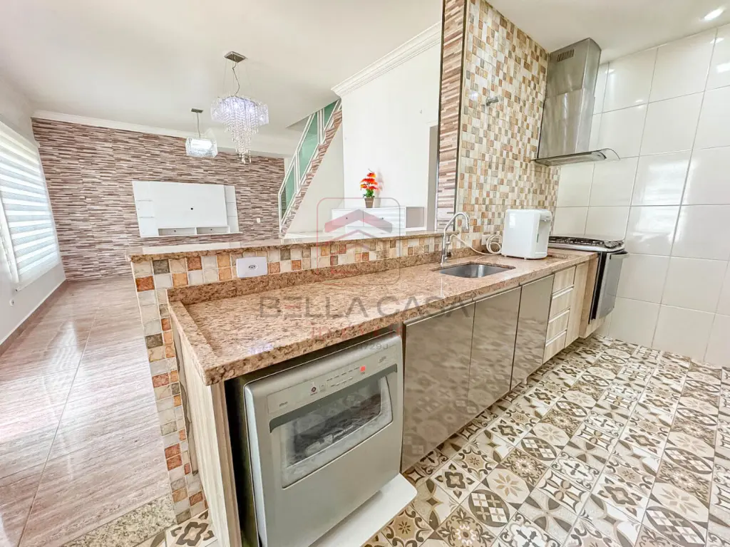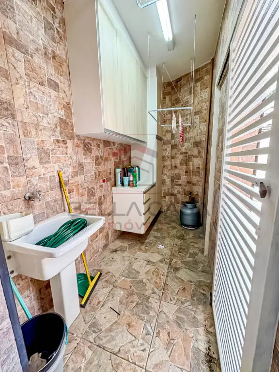 A garagem espaçosa comporta 3 vagas paralelas, e a área de serviço coberta inclui um lavabo revestido com pastilhas. A área gourmet, com churrasqueira, é perfeita para momentos de lazer e confraternização.