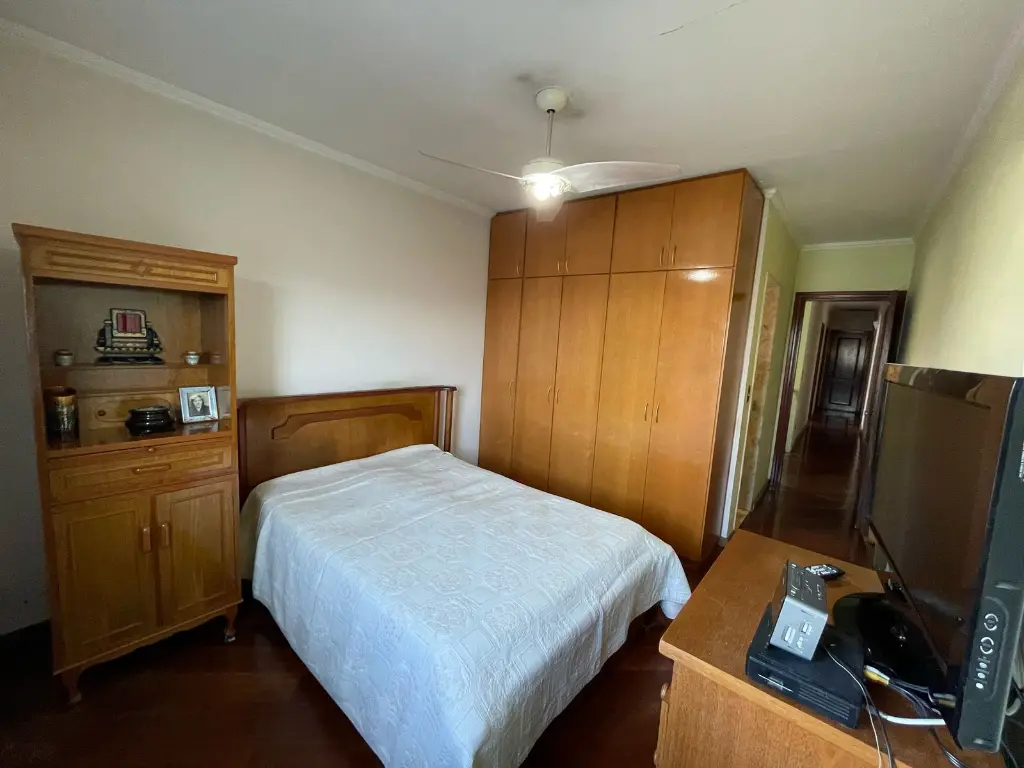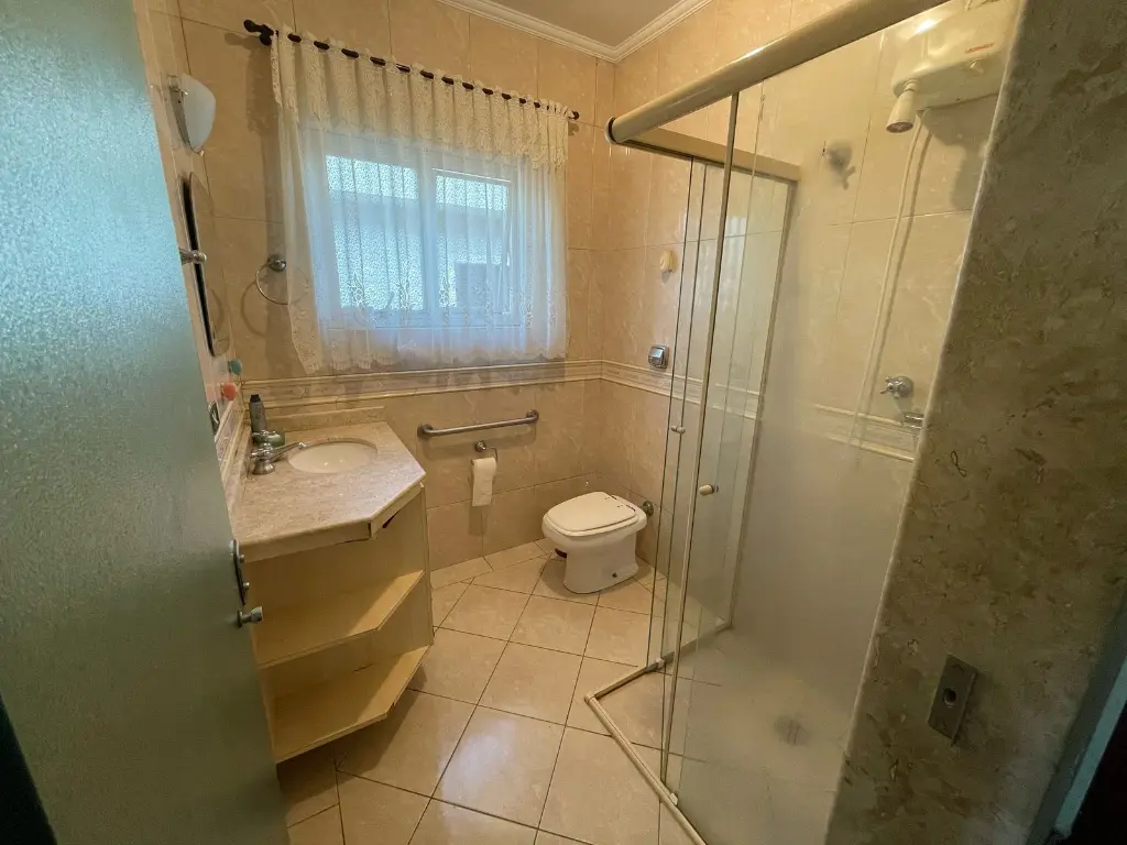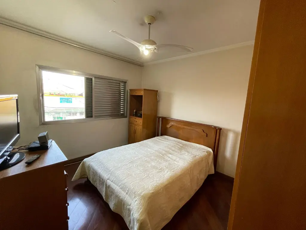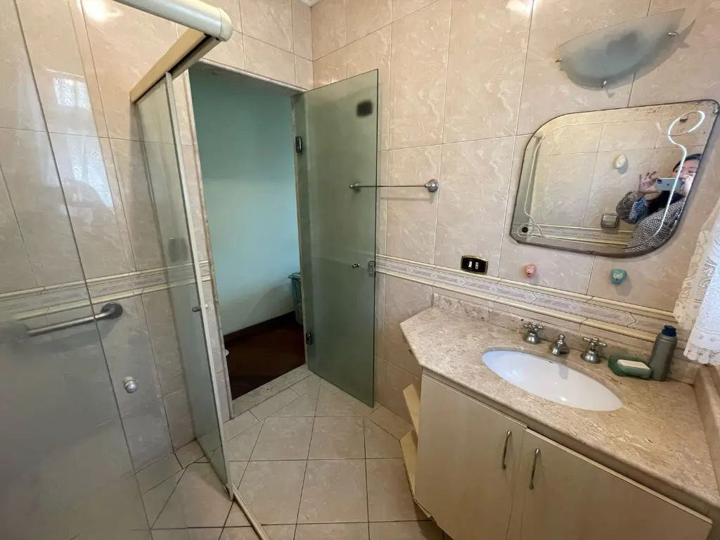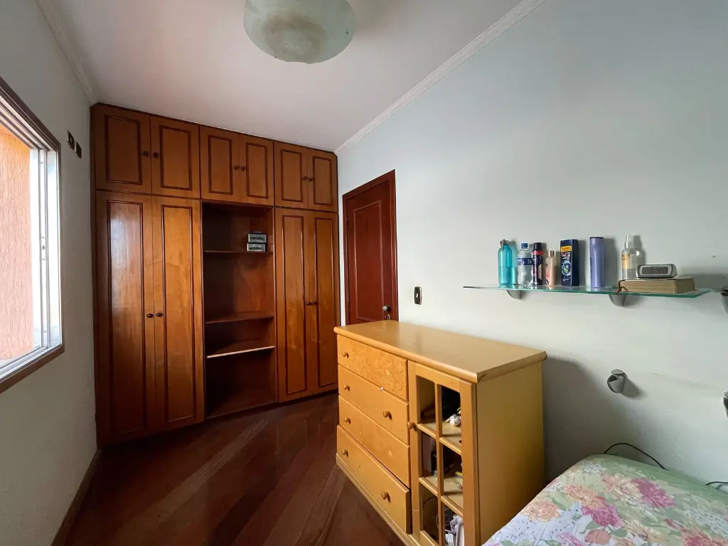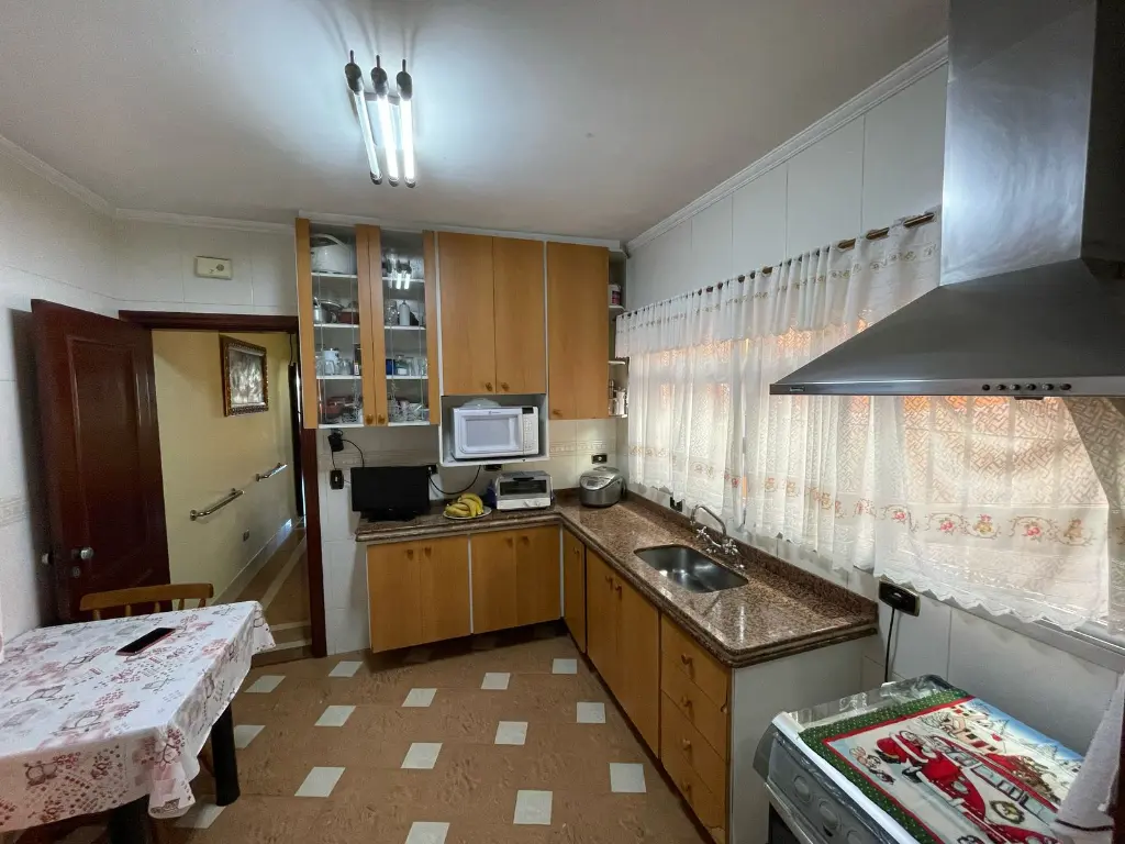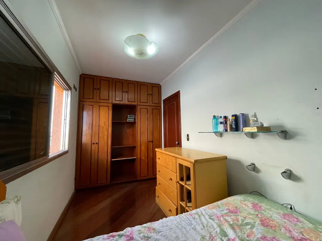 O sobrado conta com três dormitórios, sendo uma suíte, destaca-se por seus pisos em madeira, armários planejados e banheiros com acabamento em pisos e azulejos, além de box em vidro. As escadas em granito conferem um toque de sofisticação, enquanto a sala de dois ambientes com pisos em madeira e lavabo proporcionam um ambiente acolhedor. A cozinha, com piso e azulejo, conta com pia em granito, e a área de serviço oferece praticidade com uma suíte funcional. Com seis vagas de garagem no subsolo e portão automatizado, o sobrado oferece comodidade e segurança.
