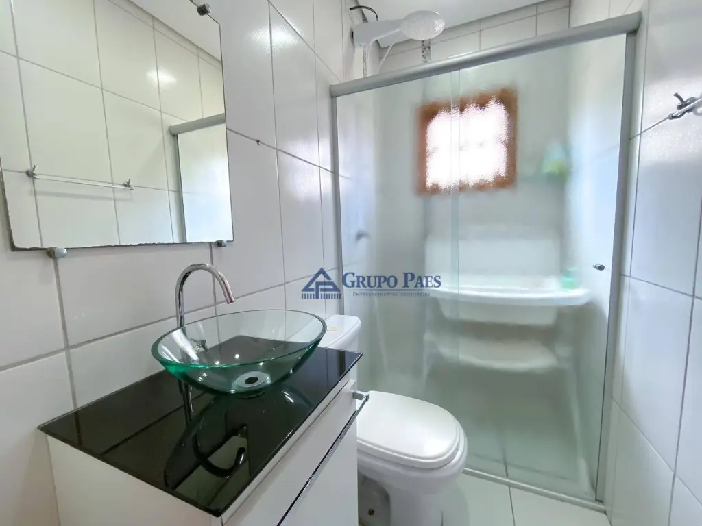 Acabamento conta com portas e janelas em madeira maciça, portas camarão, piso em porcelanato, corredor externo todo coberto em policarbonato garantindo a claridade e protegendo a área de chuva, moldura de gesso por todos os cômodos, pias, escadas e soleiras em granito, papel de parede no dormitório infantil. E um dos diferenciais do imóvel é que possui um sótão, onde há possibilidade de fazer mais cômodos.