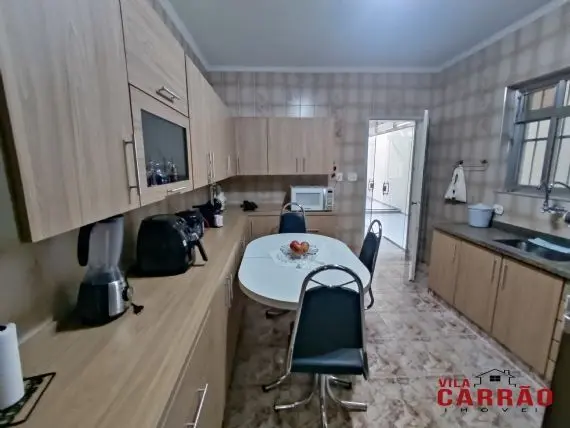 Amplo e arejado sobrado com 3 dormitórios sendo 1 deles com terraço e preparação para suíte, sala, lavabo, cozinha grande e repleta de armários, área coberta ao lado da cozinha, para uma ótima área gourmet, já fechada em vidros, quintal, corredor lateral, dependência de empregada com banheiro e lavanderia.