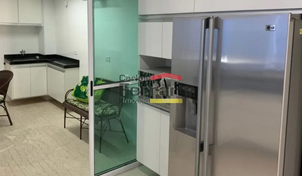Cozinha ampla, equipada com fogão e geladeira Side by Side. Possui armários embutidos em 2 dormitórios e na cozinha.
