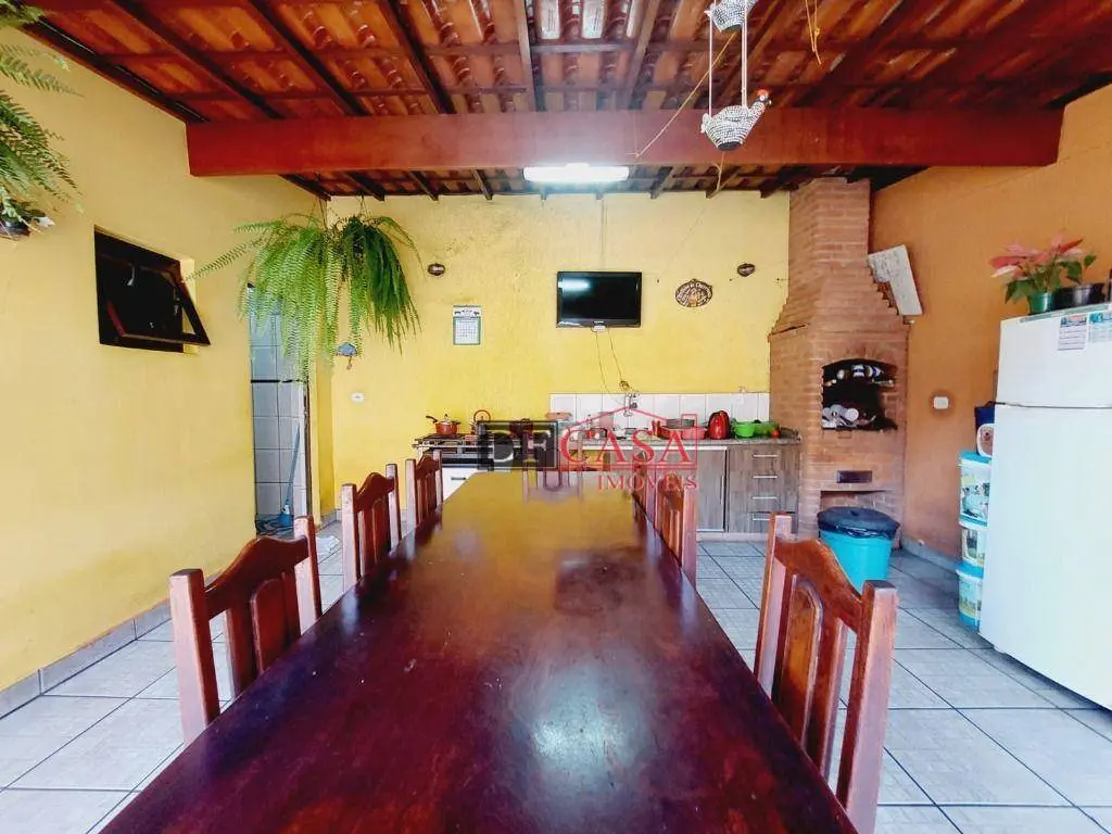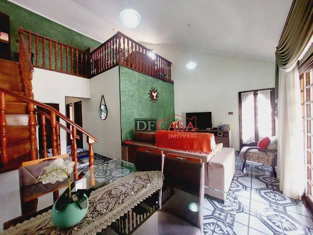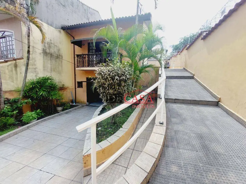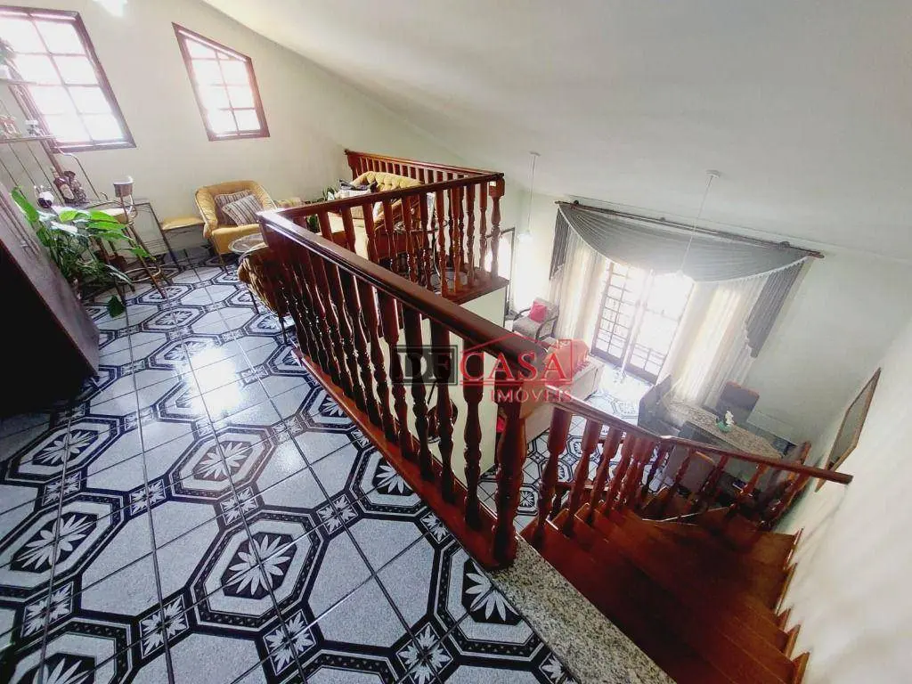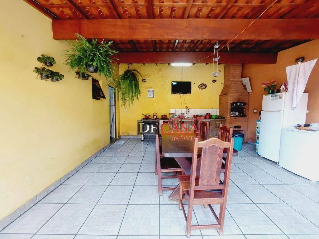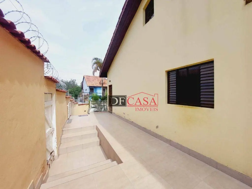 Sobrado possui 3 dormitórios (sendo uma suíte e sacada), banheiro, sala ampla para 2 ambientes, sala de estar, lavabo, cozinha, lavanderia, área externa possui quintal e churrasqueira, corredor lateral.