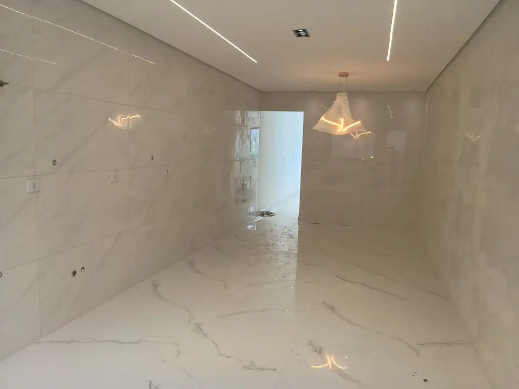 - Unidade com 190 m² de área construída com 3 suítes, sendo 1 com sacada, salas de estar e jantar amplas, cozinha grande, lavabo, área de serviço coberta, espaço gourmet com pia, churrasqueira e banheiro, 6 vagas de garagem cobertas, excelente acabamento, todo em porcelanato retificado e granito.