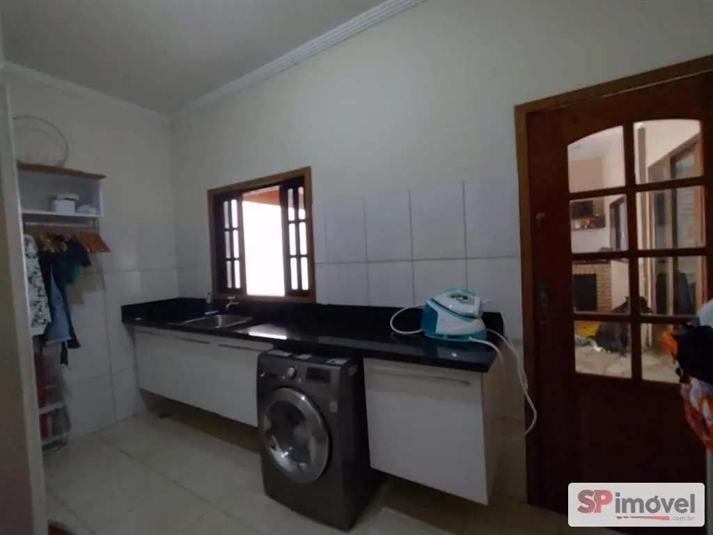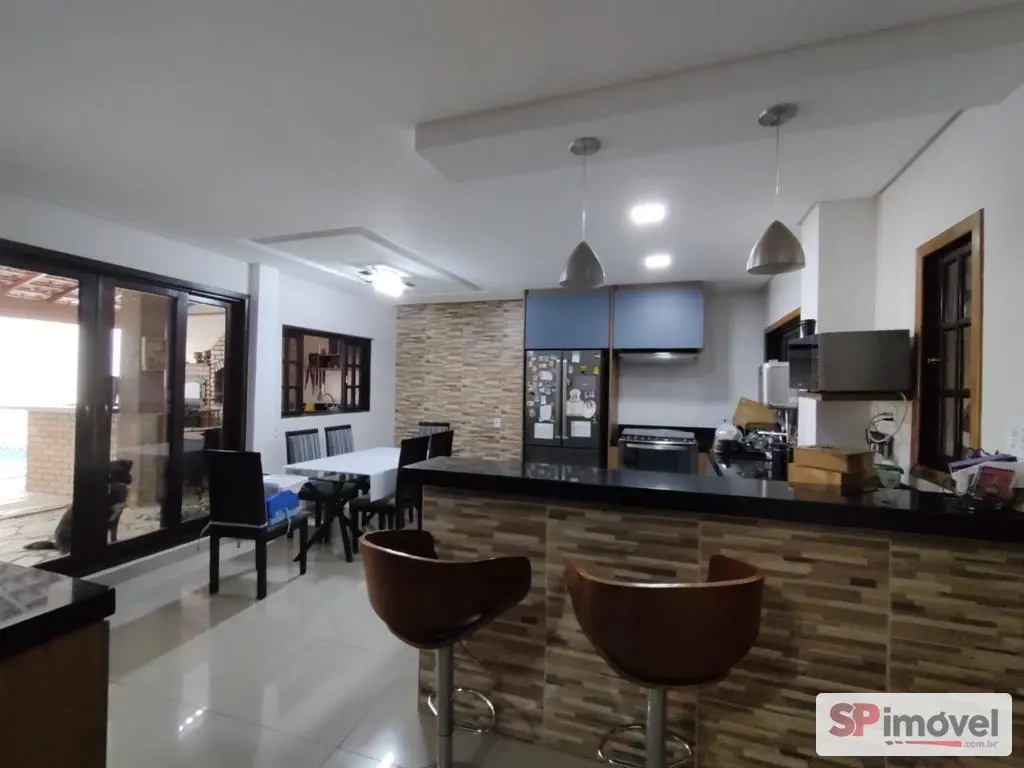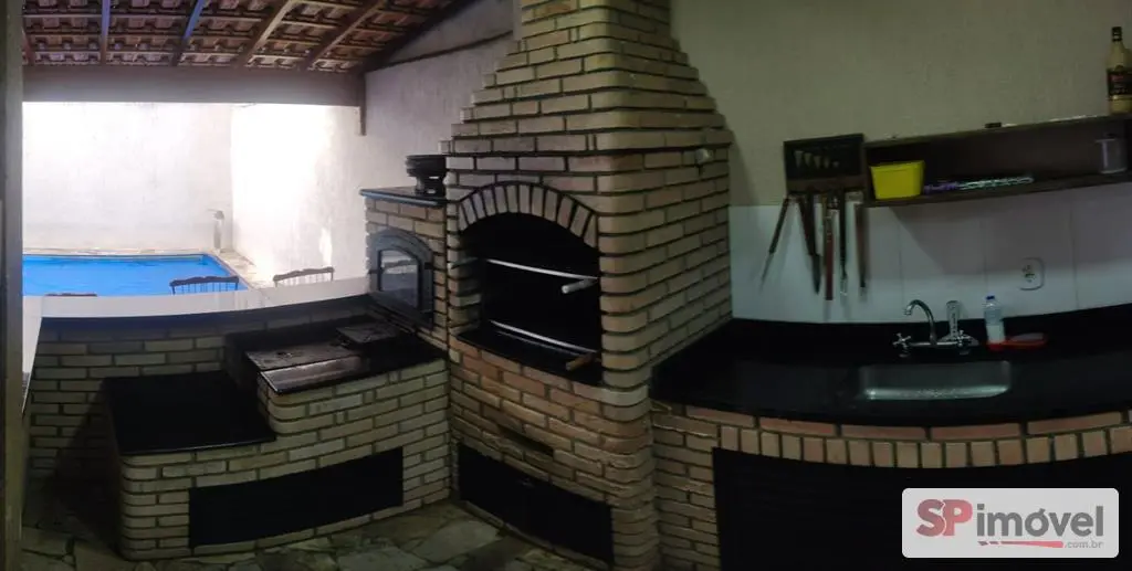 Casa ampla com 5 quartos, 2 salas sendo uma delas bem grande com mesa de sinuca e pebolim, piscina, área gourmet com churrasqueira, forno e fogão a lenha e lavanderia com armários.