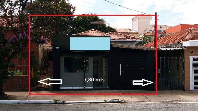 O terreno com 6,55m² de frente para rua Dona Matilde, 27,30m² de fundos.