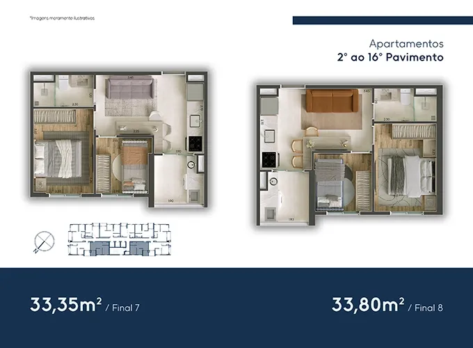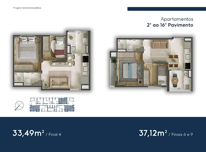 ⇒ Metragem: 35m² | 37m² | 40m² e 44m²