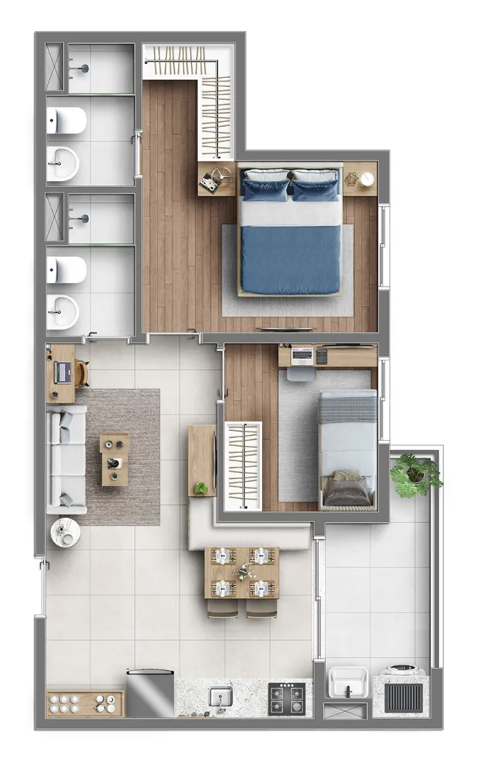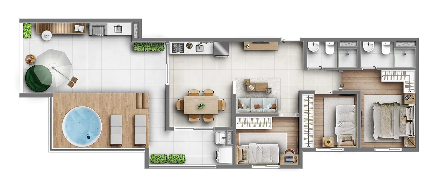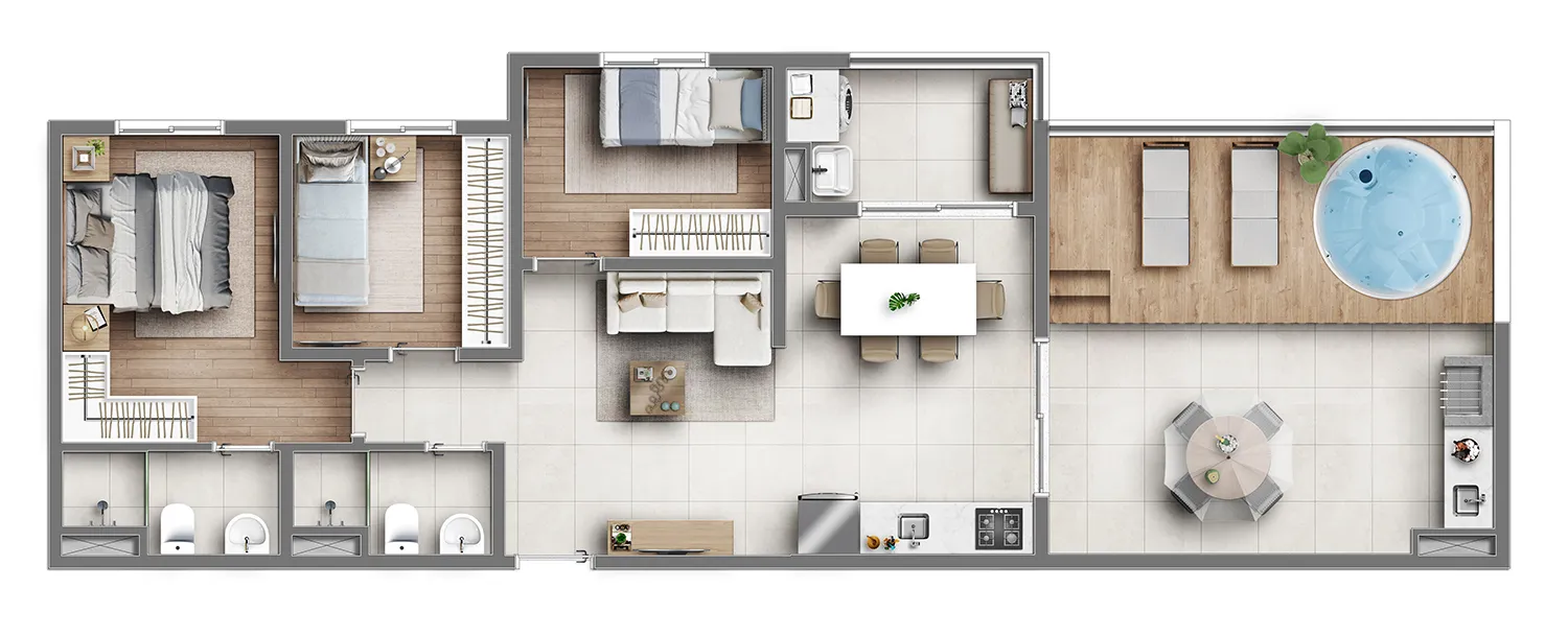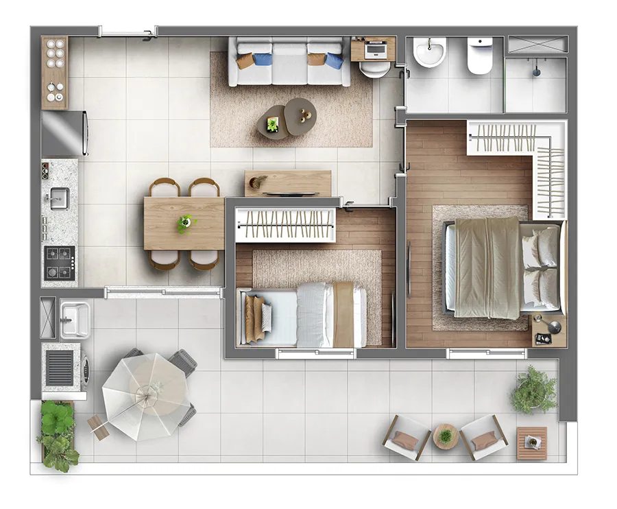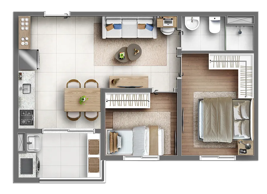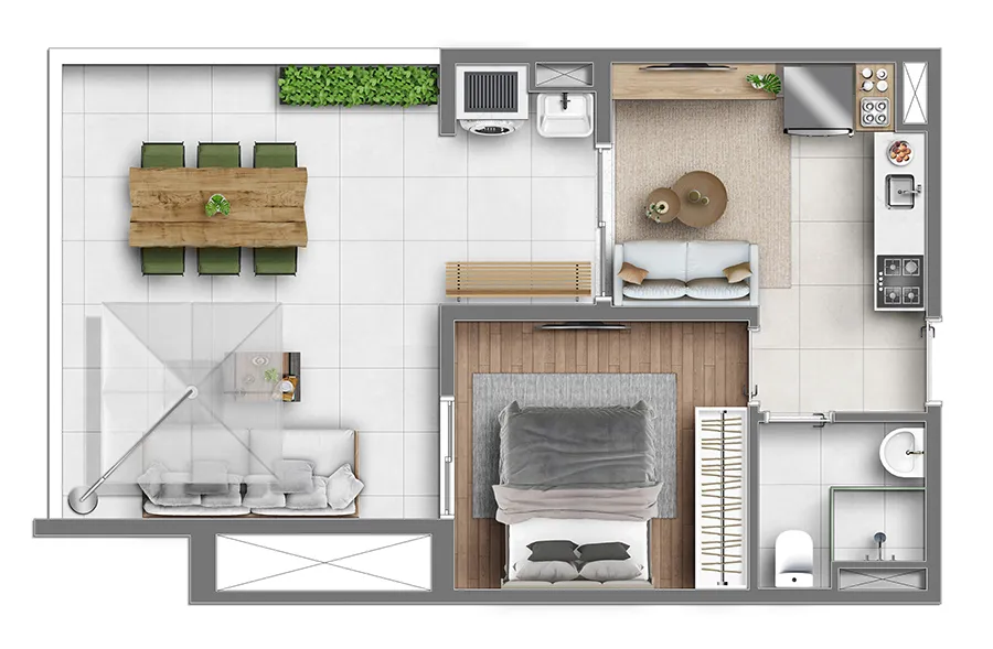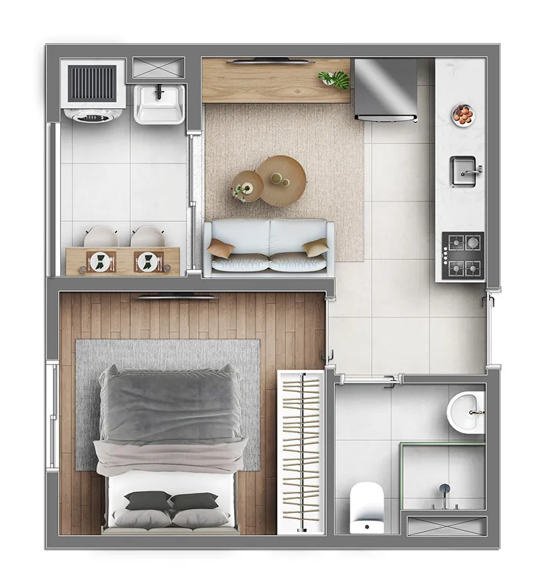 ⇒ Metragem: 26m² | 41m² | 45m² | 49m² | 53m² e 90m²