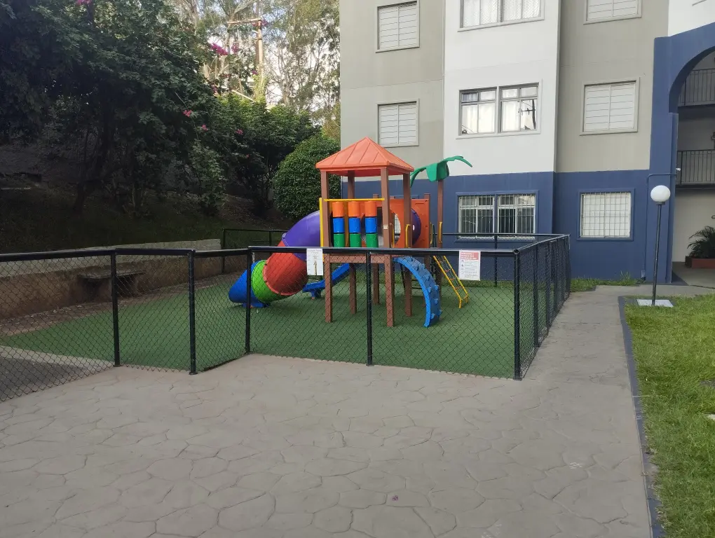 Condomínio com segurança, lavanderia coletiva, play, mine mercado.