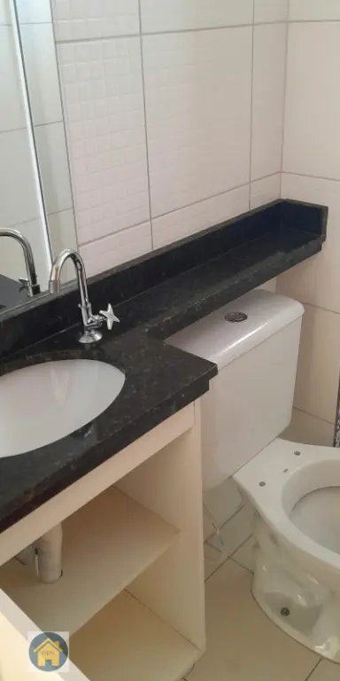 * Banheiro com espelho, box e gabinete