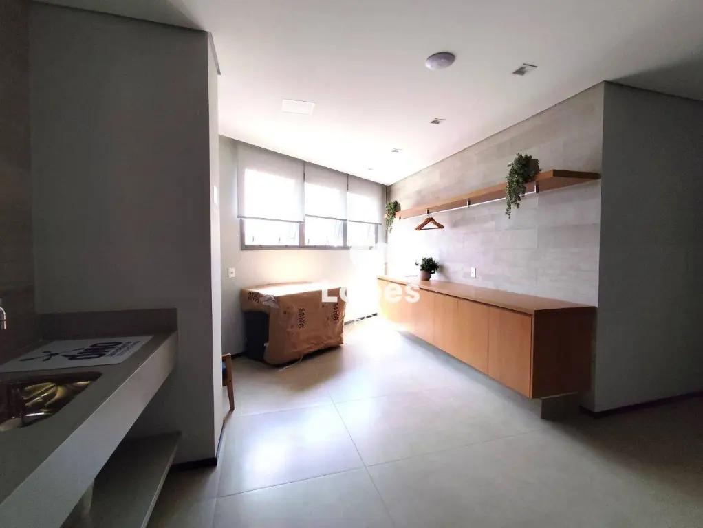 O imóvel dispõe de 1 dormitório aconchegante, sala de estar, cozinha equipada com armários, sacada envidraçada para aproveitar a vista, banheiro moderno e área de serviço. Perfeito para quem busca conforto e funcionalidade.