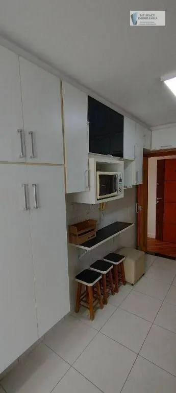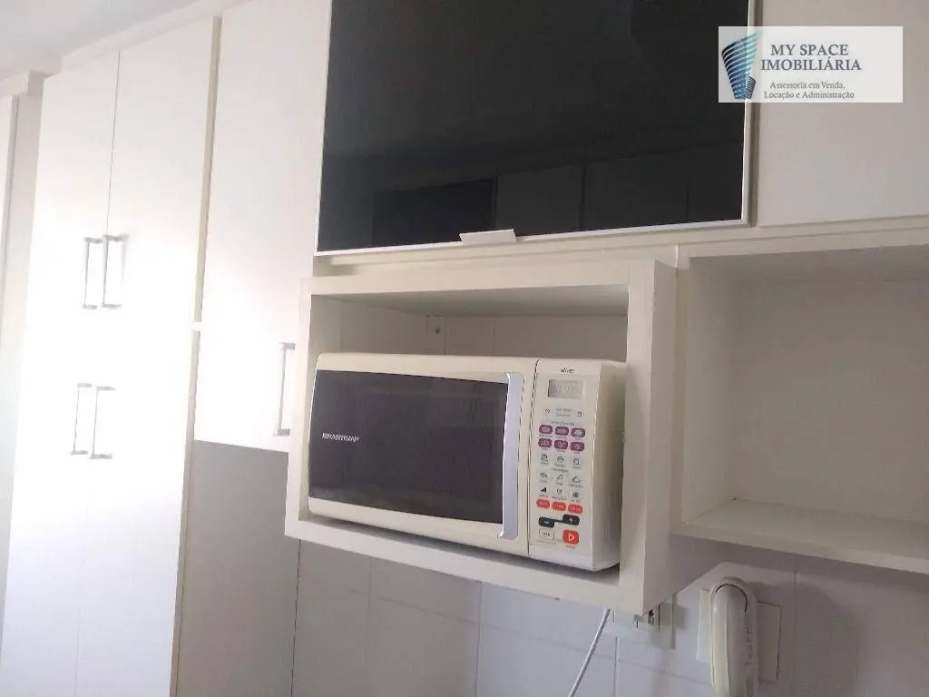 Lindo apartamento de 3 dormitórios, sala para 2 ambientes com sofá e mesa com cadeiras, terraço, cozinha com armários planejados, fogão, microondas e geladeira, área de serviço com banheiro e máquina de lava e seca, 1 vaga de garagem coberta.