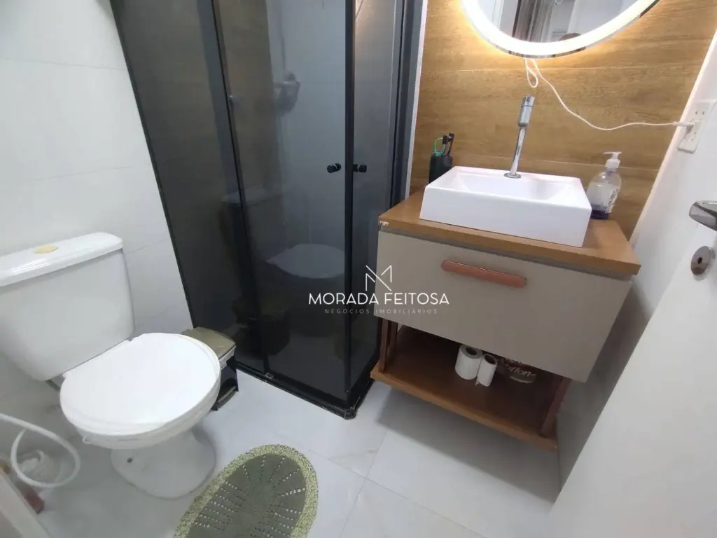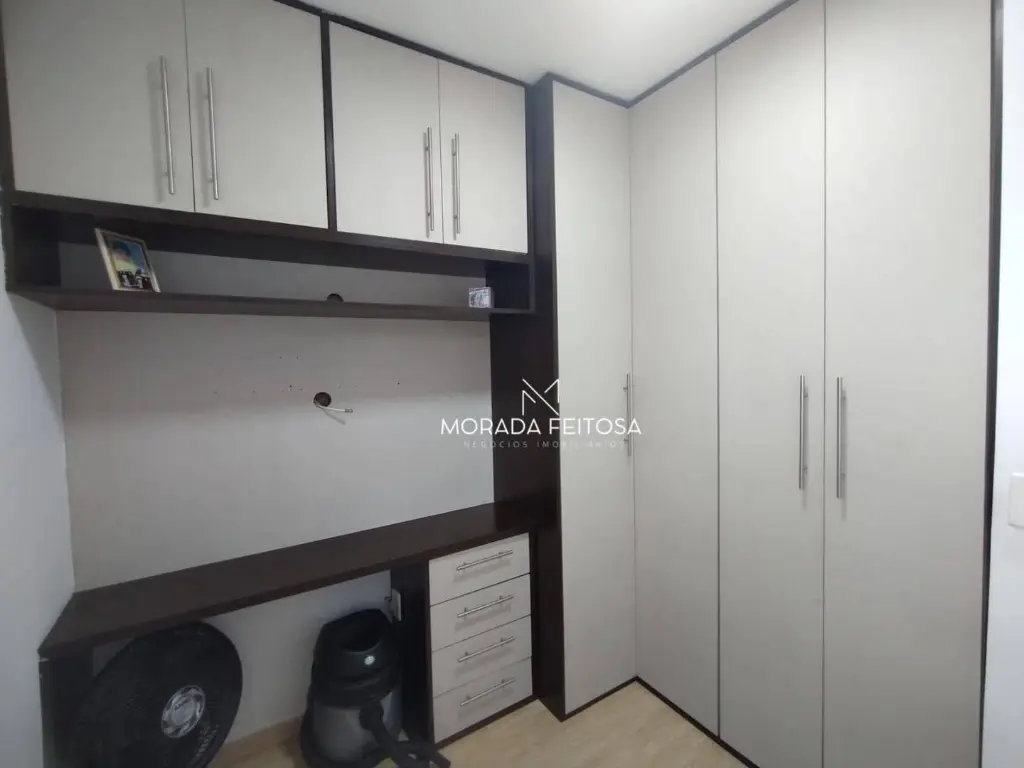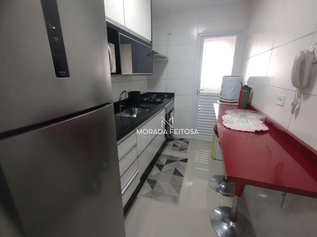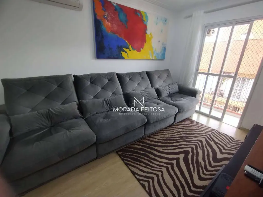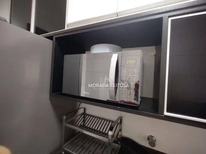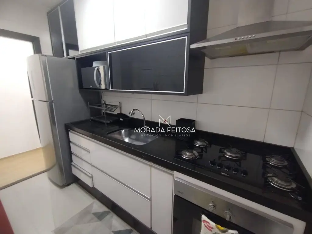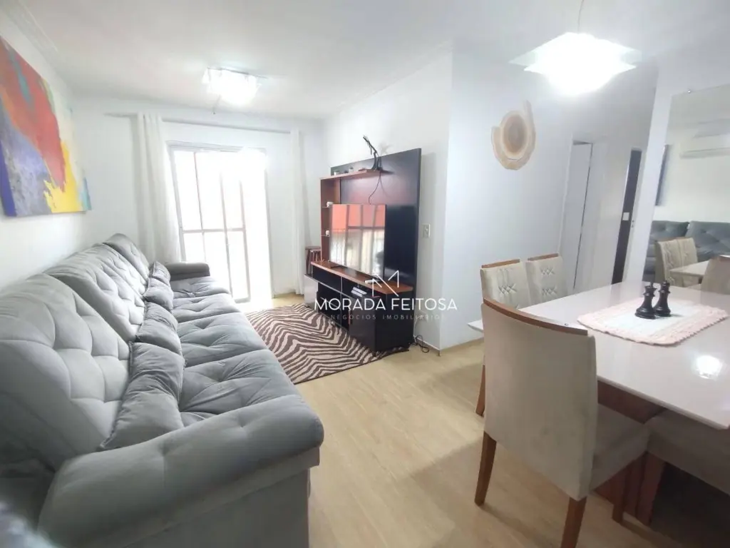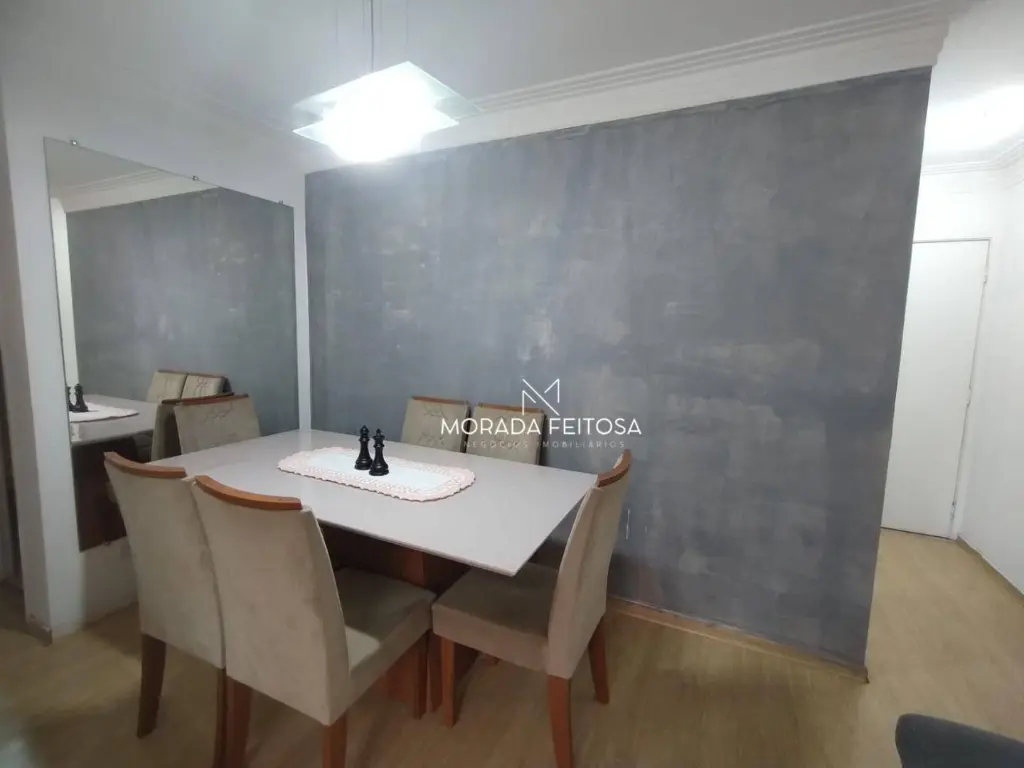 Apartamento com 3 dormitórios sendo 2 com planejados todo em piso laminado, 1 banheiro social com box de vidro e gabinete, sala dois ambientes, rack com painel, todo em piso laminado, ar-condicionado e luminárias, sacada com tela de proteção, cozinha com planejados, fogão cooktop com 5 bocas, forno, mesa fixa com 2 banquetas, área de serviço separada e arejada com armário, vagas para 2 carros sendo 1 fixo e outro opcional que inclui no valor do condomínio.